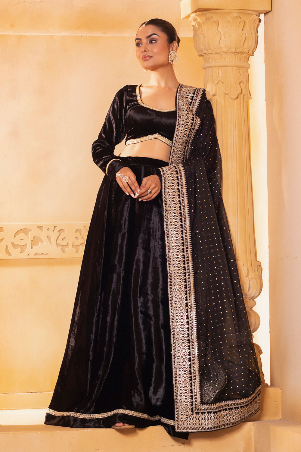 Antique Gold Sequin Lehenga Set