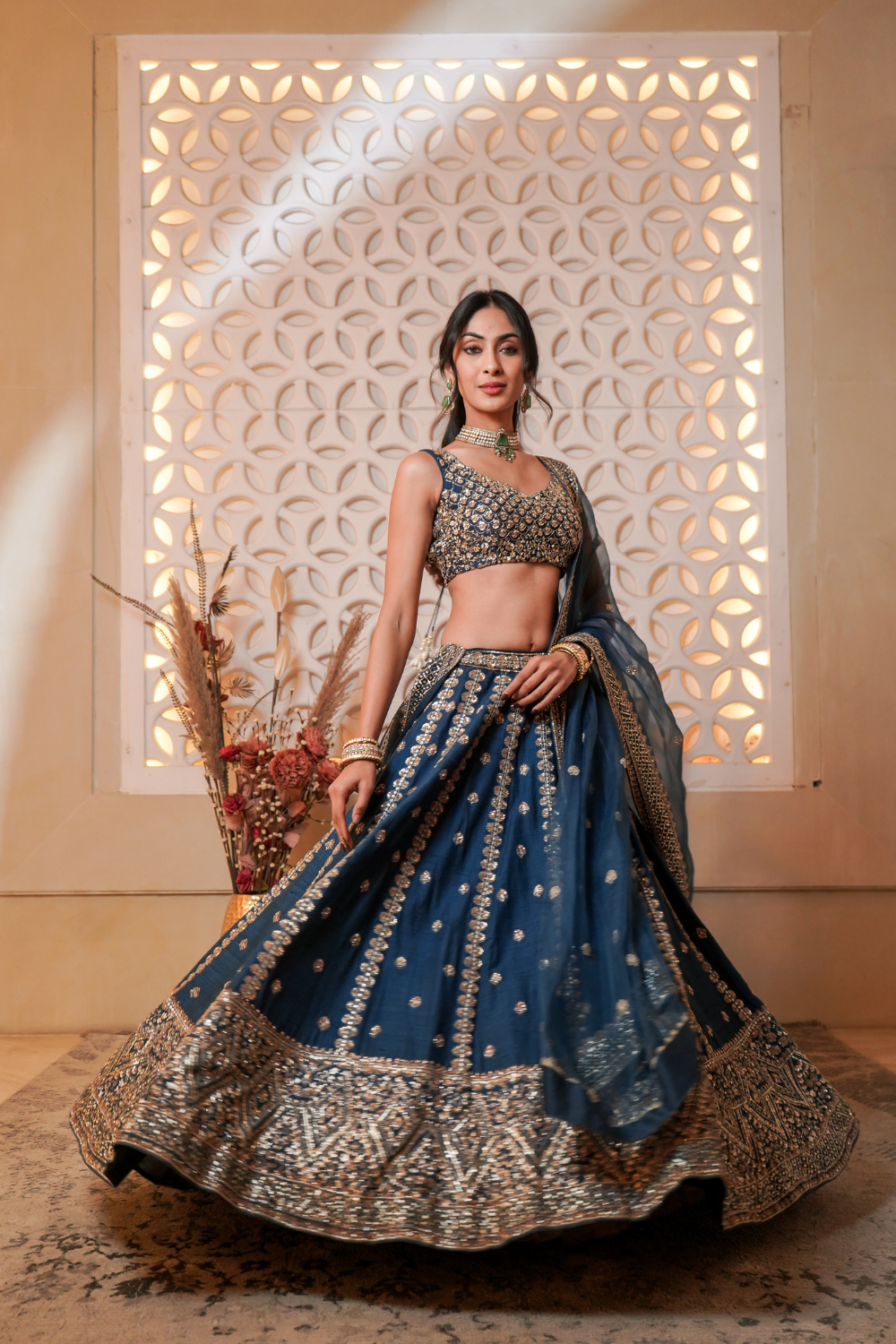 Rohini Belani Garyali in Blue Paisley Lehenga Set