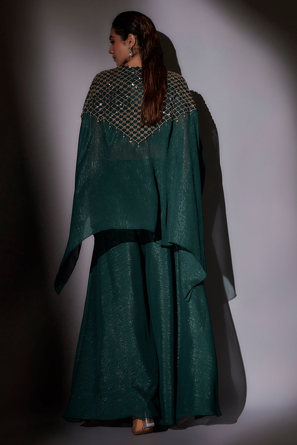 Hand Embroidered Cape Paired With Flared Sharara
