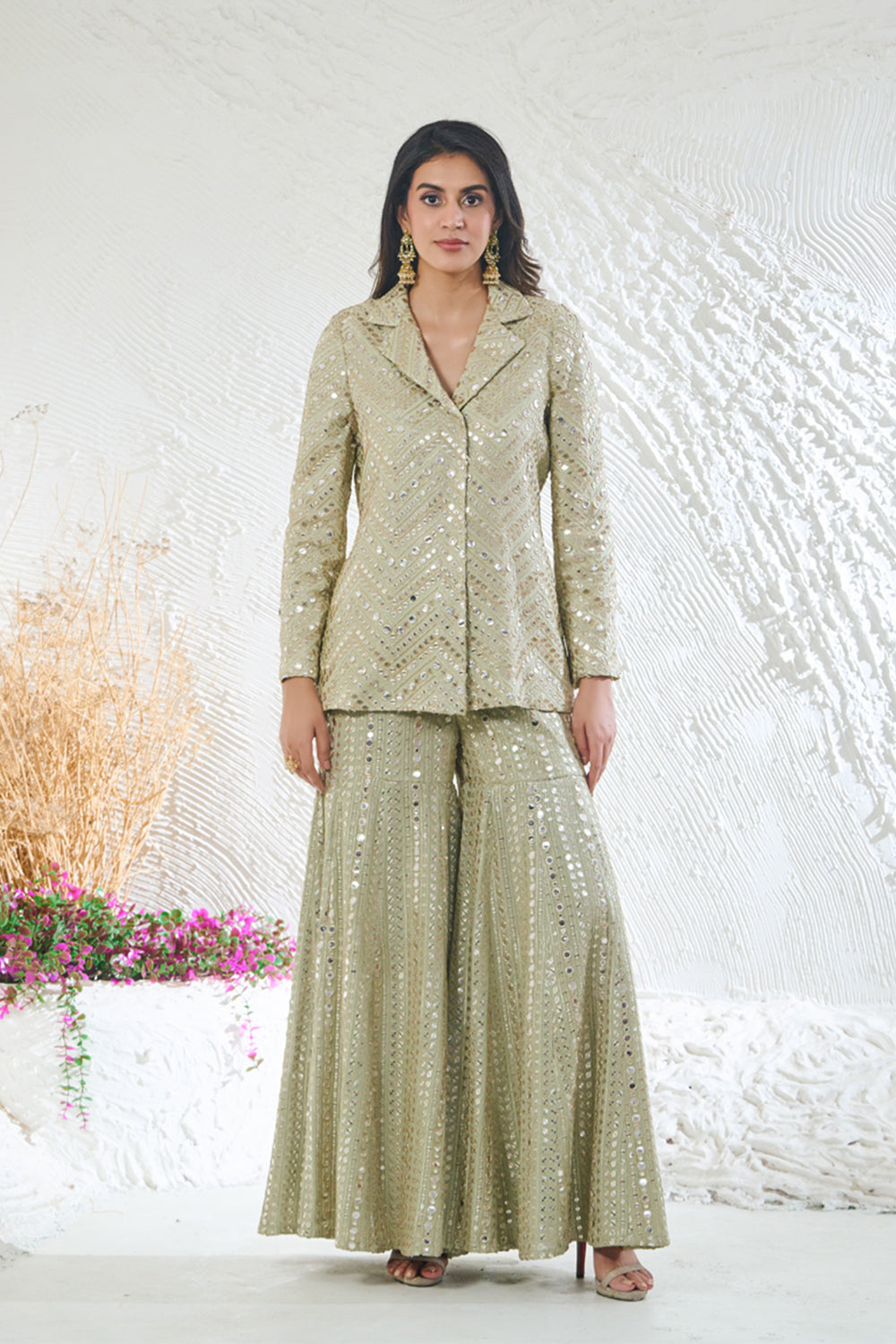 Sage Green Sharara With Short Style Kurta Jacket