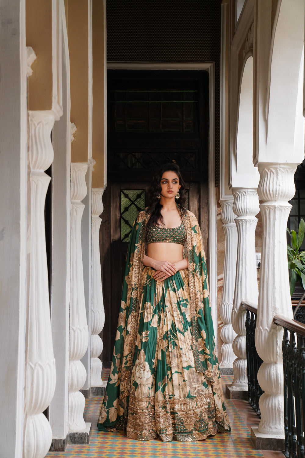 Bottle Green Floral Lehenga Set