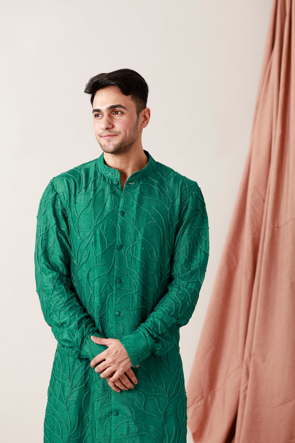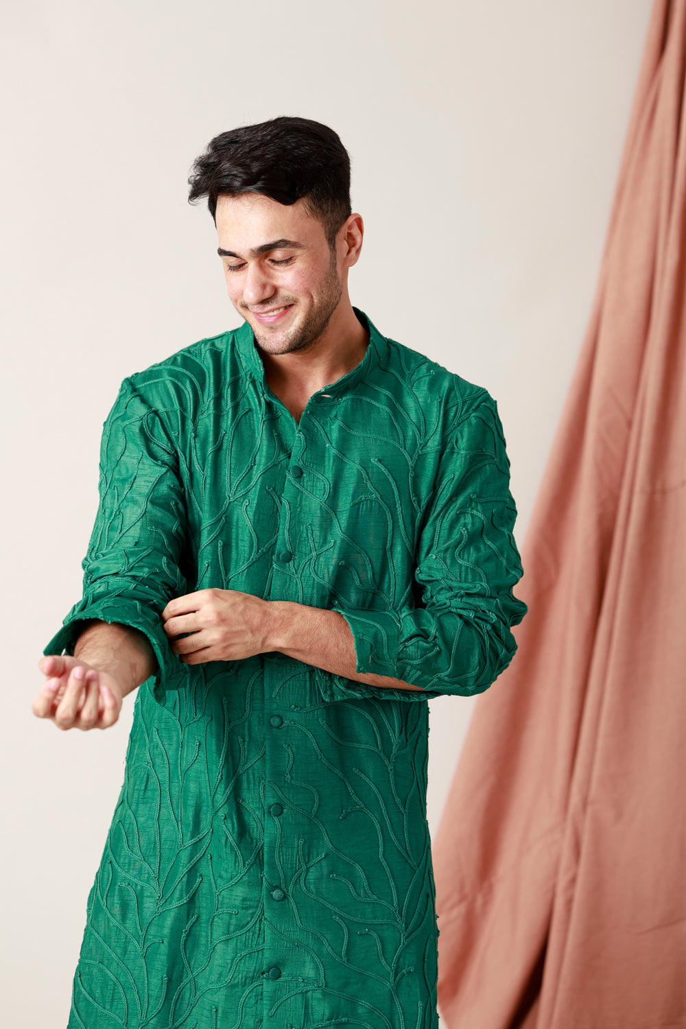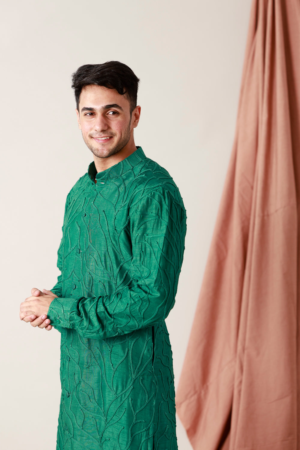 Raw Silk Embroidered Short Kurta Paired With Straight Pants