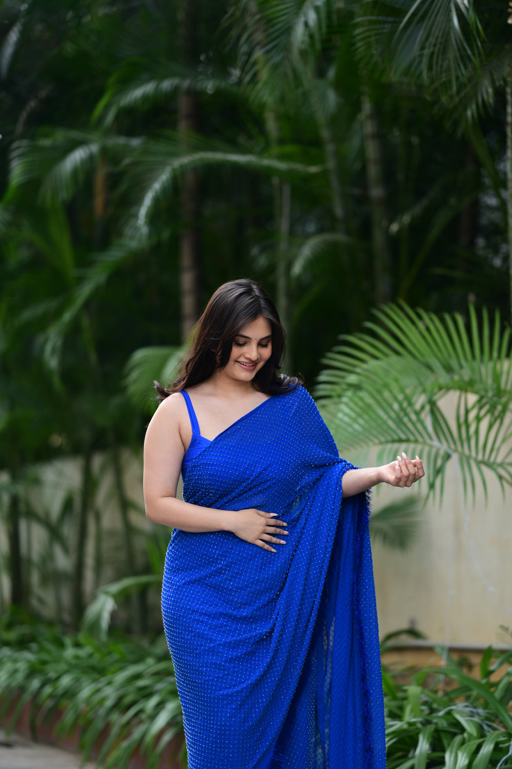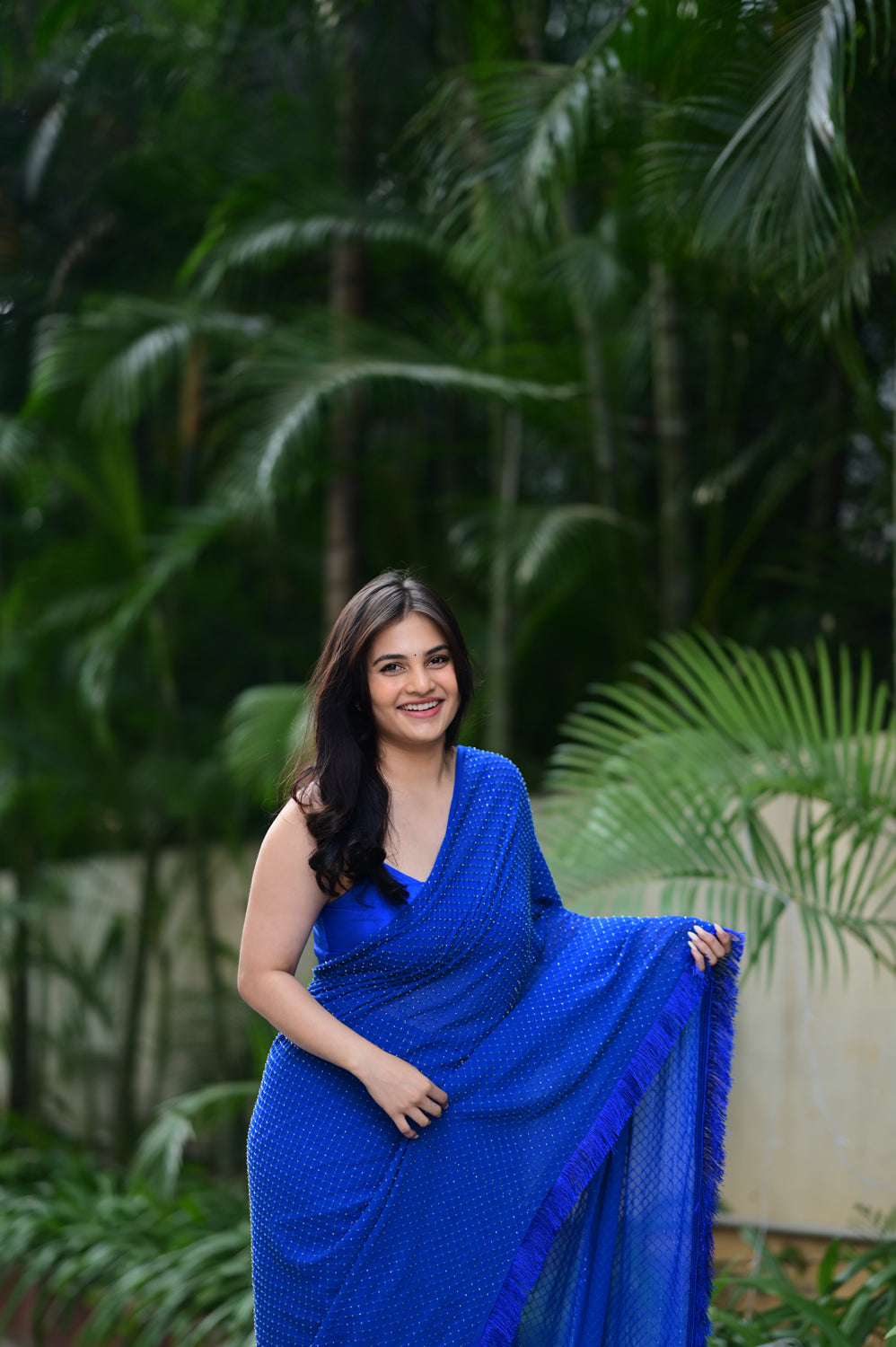 Drapeed lycra fitted blouse with pre draped cut dana saree with hand made tassel