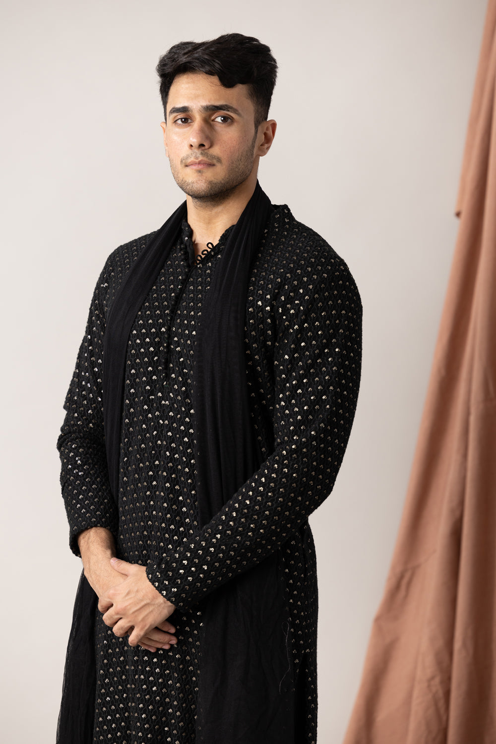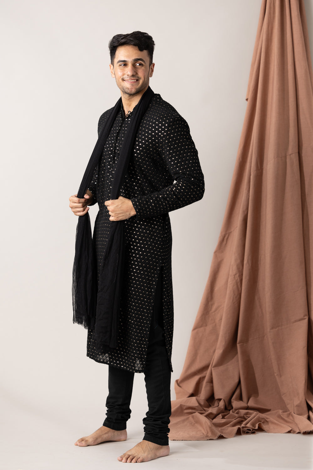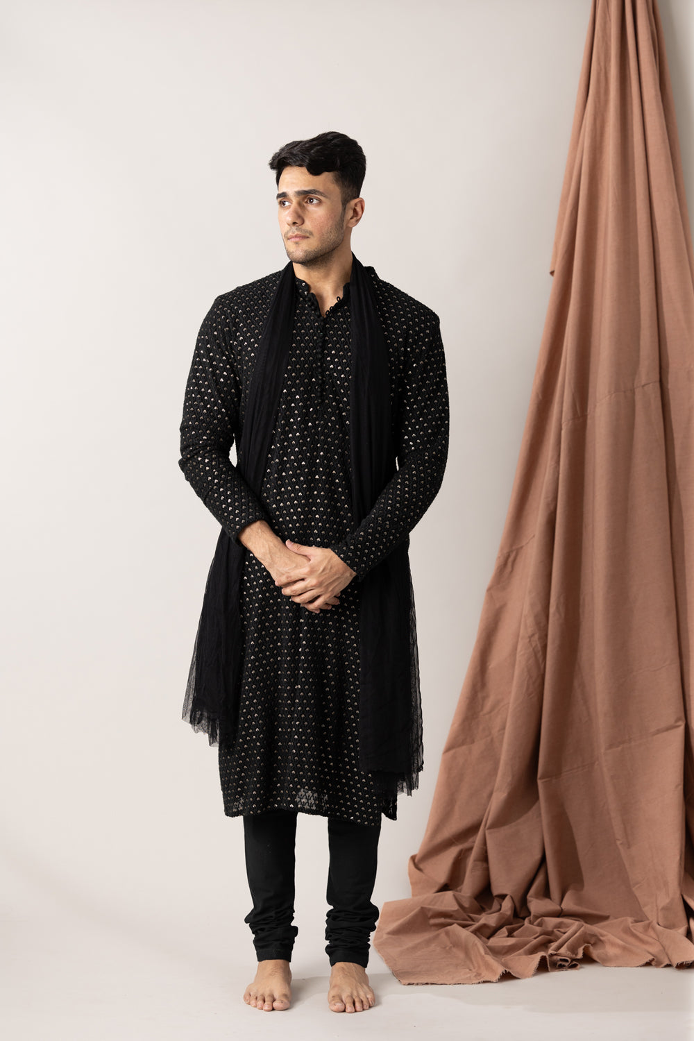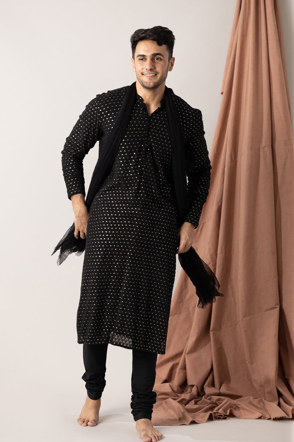 Embroidered black georgette kurta with pants