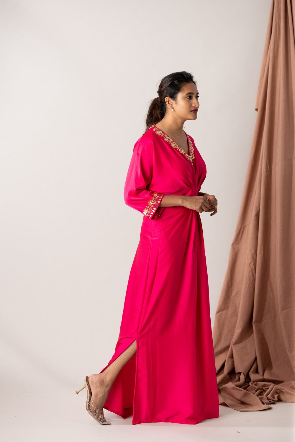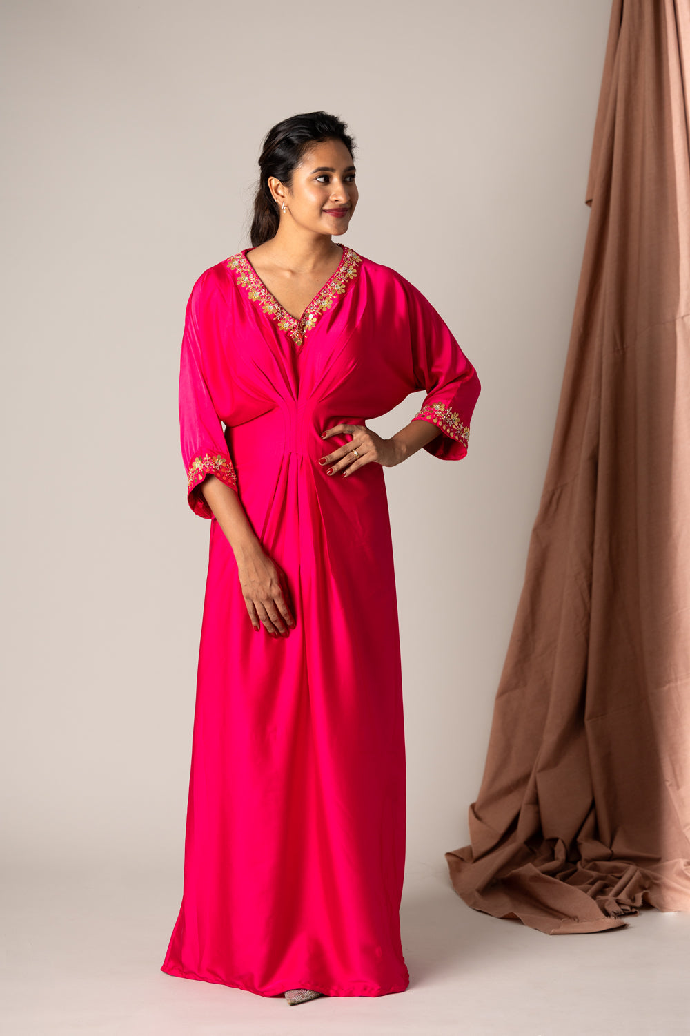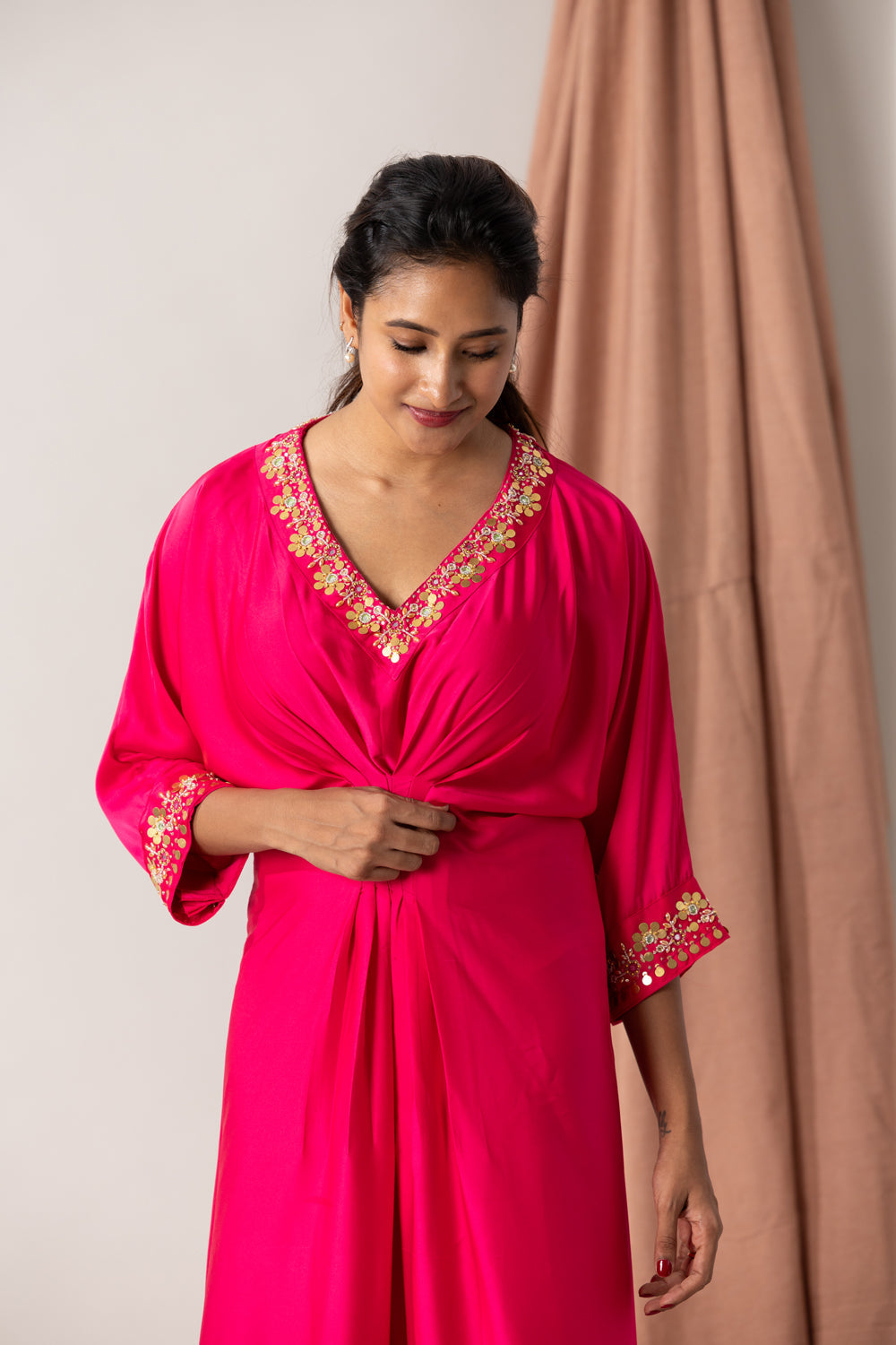 Armani Silk Satin Kaftan With Hand Embroiderdd Neck And Sleeve Ends