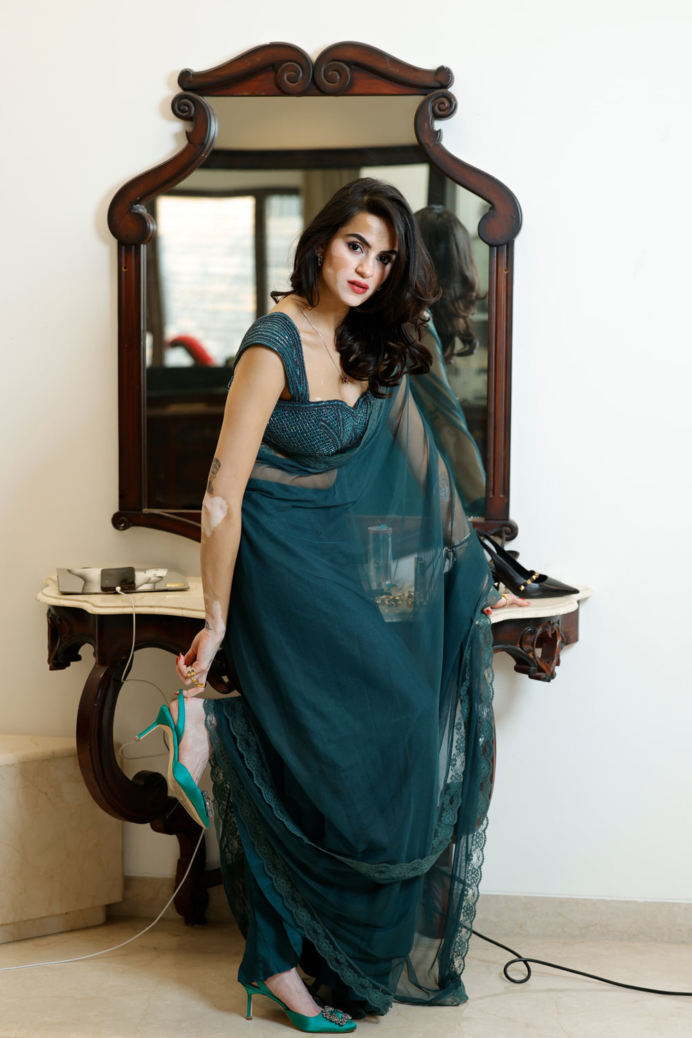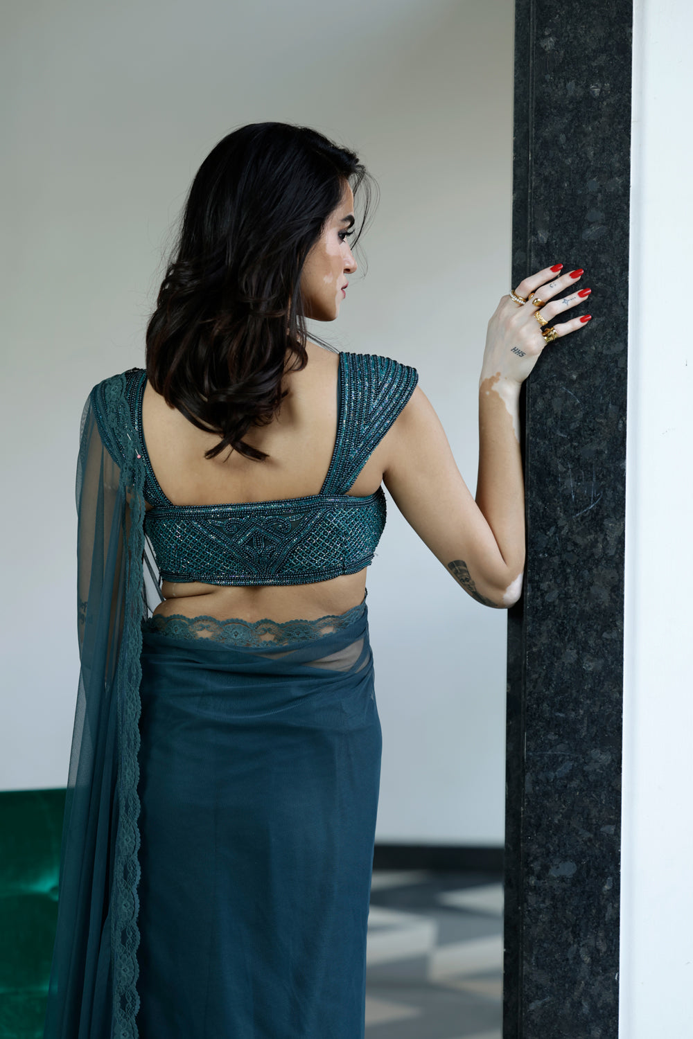 Forest Green Saree With Heavy Hand Embroidered Blouse