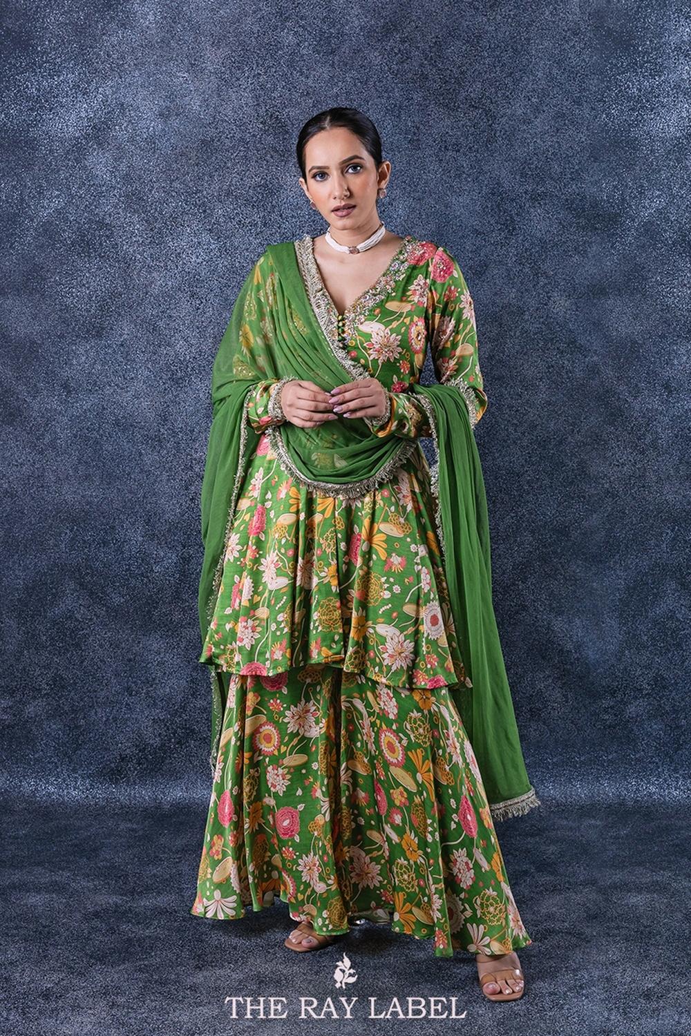 Fern Green Floral Sharara Set