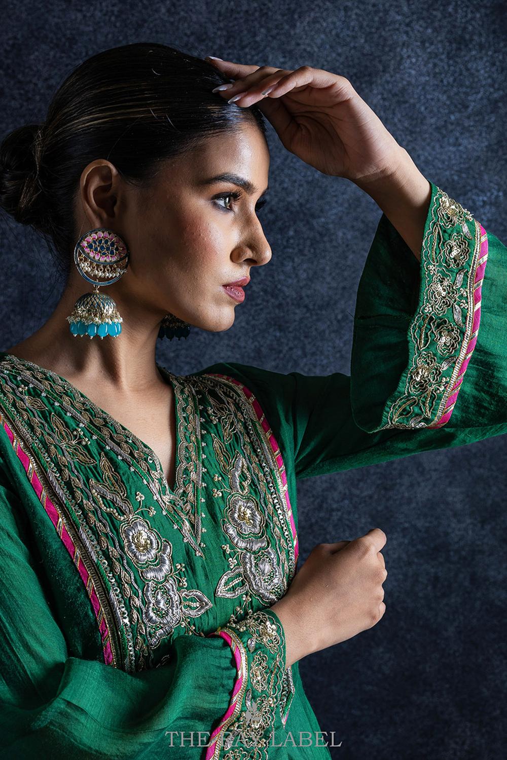 Fabric: Top: Chanderi silk Bottom: Chanderi jaquard silk Dupatta: Net