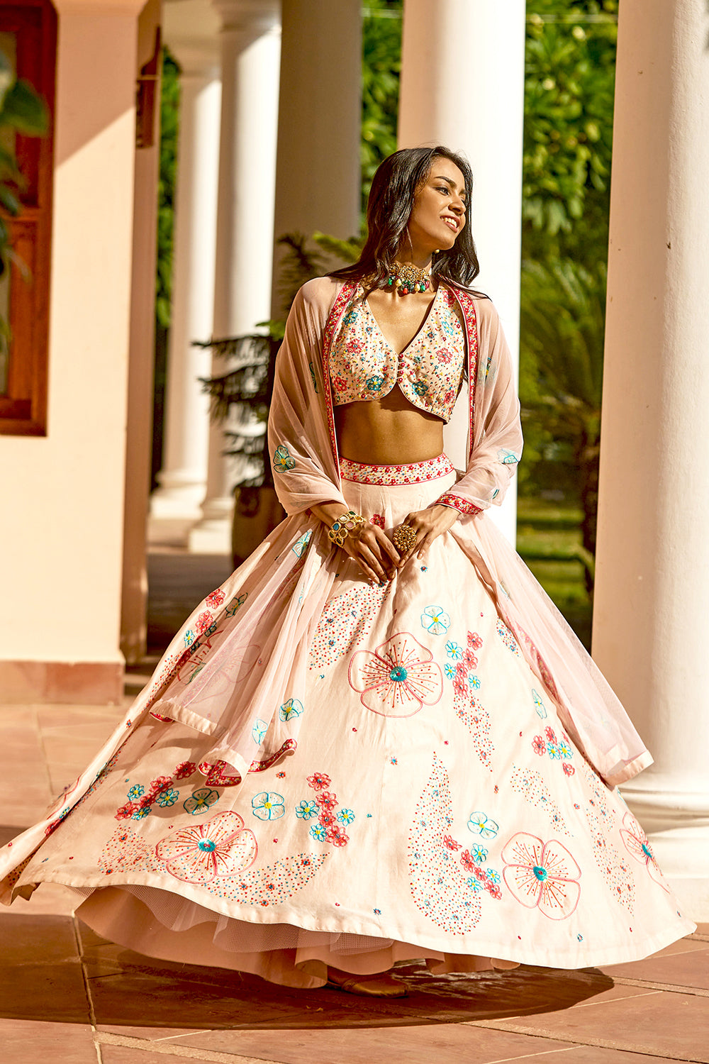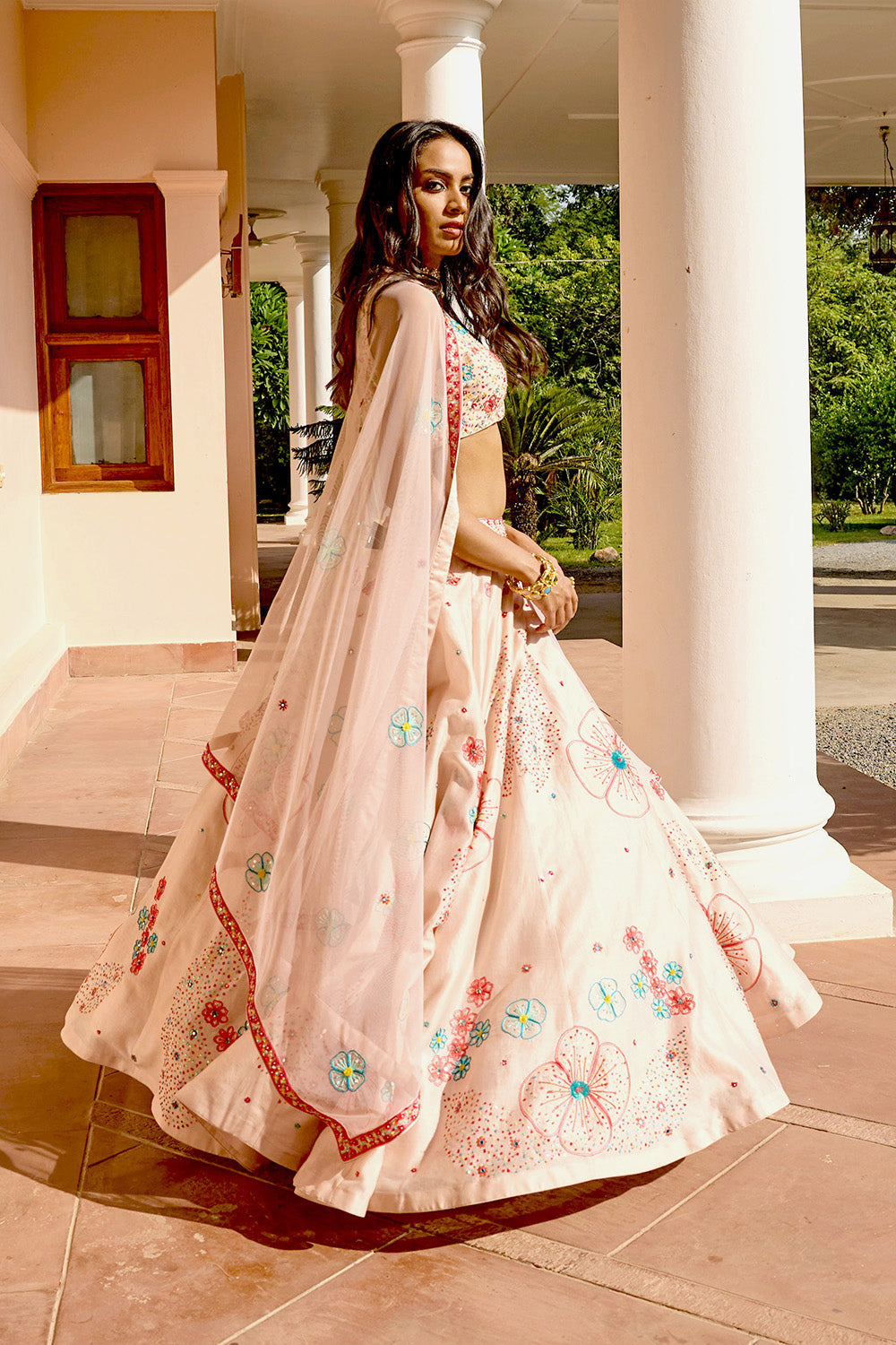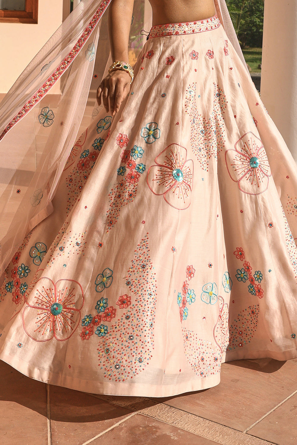 Multi-Colored Sequins & Resham Hand Embroidered Silk Lehenga Set