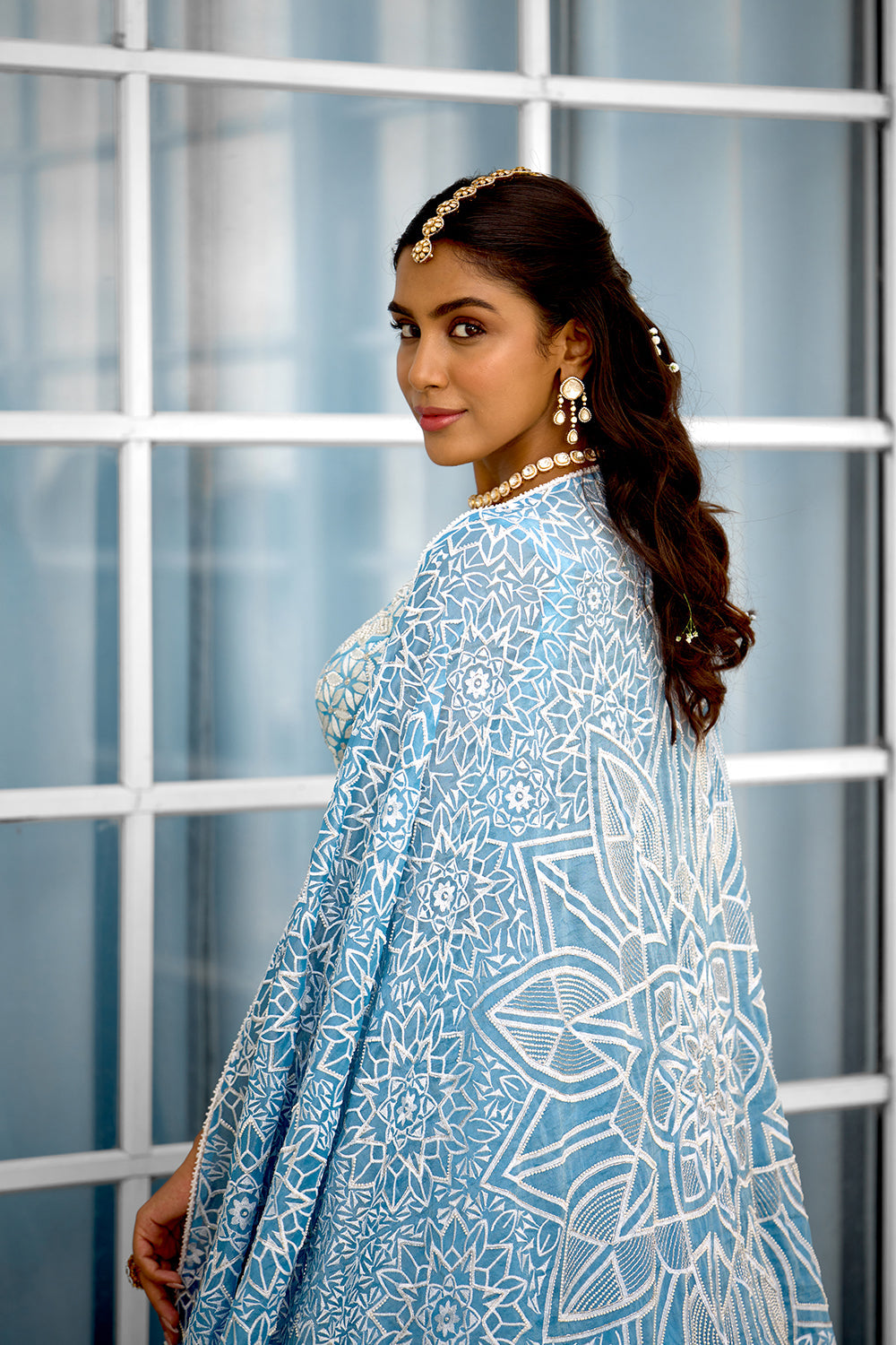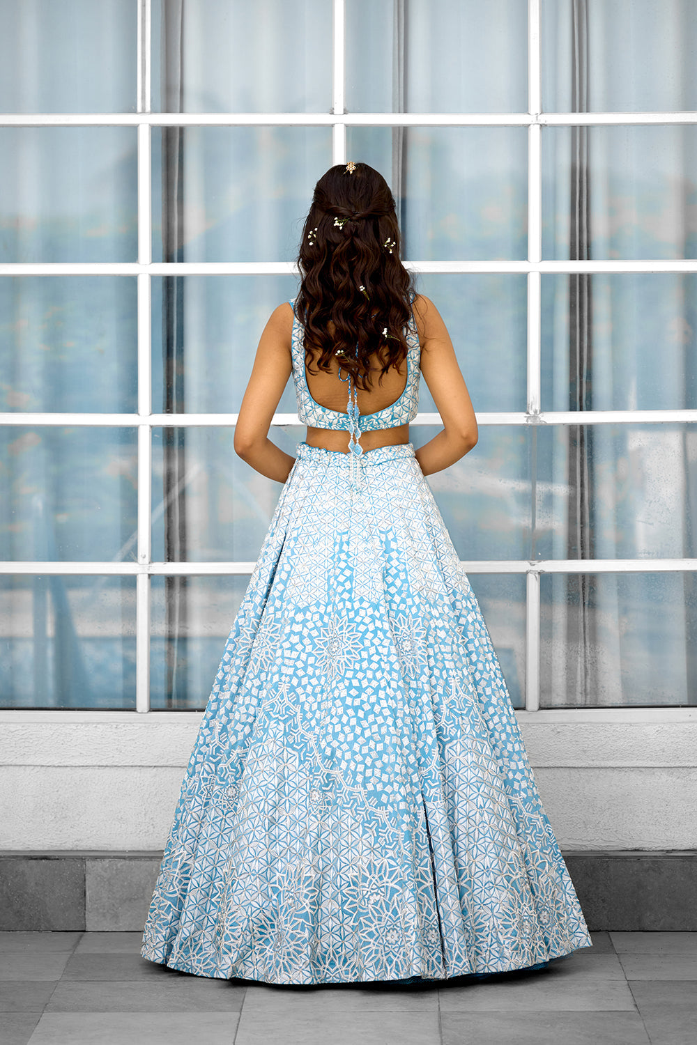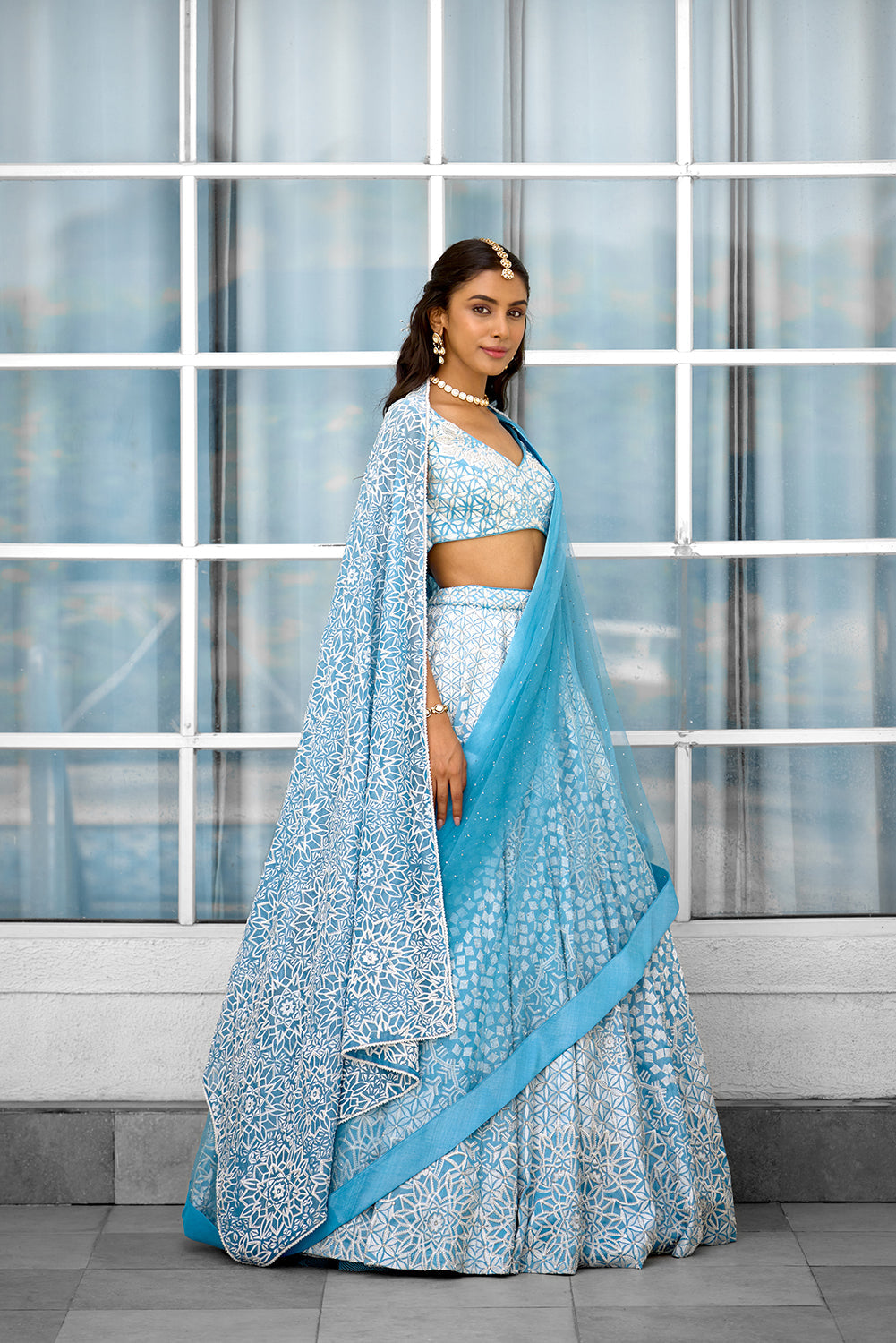 Lehenga Set with embellished blouse and heavy dupatta with another light dupatta.