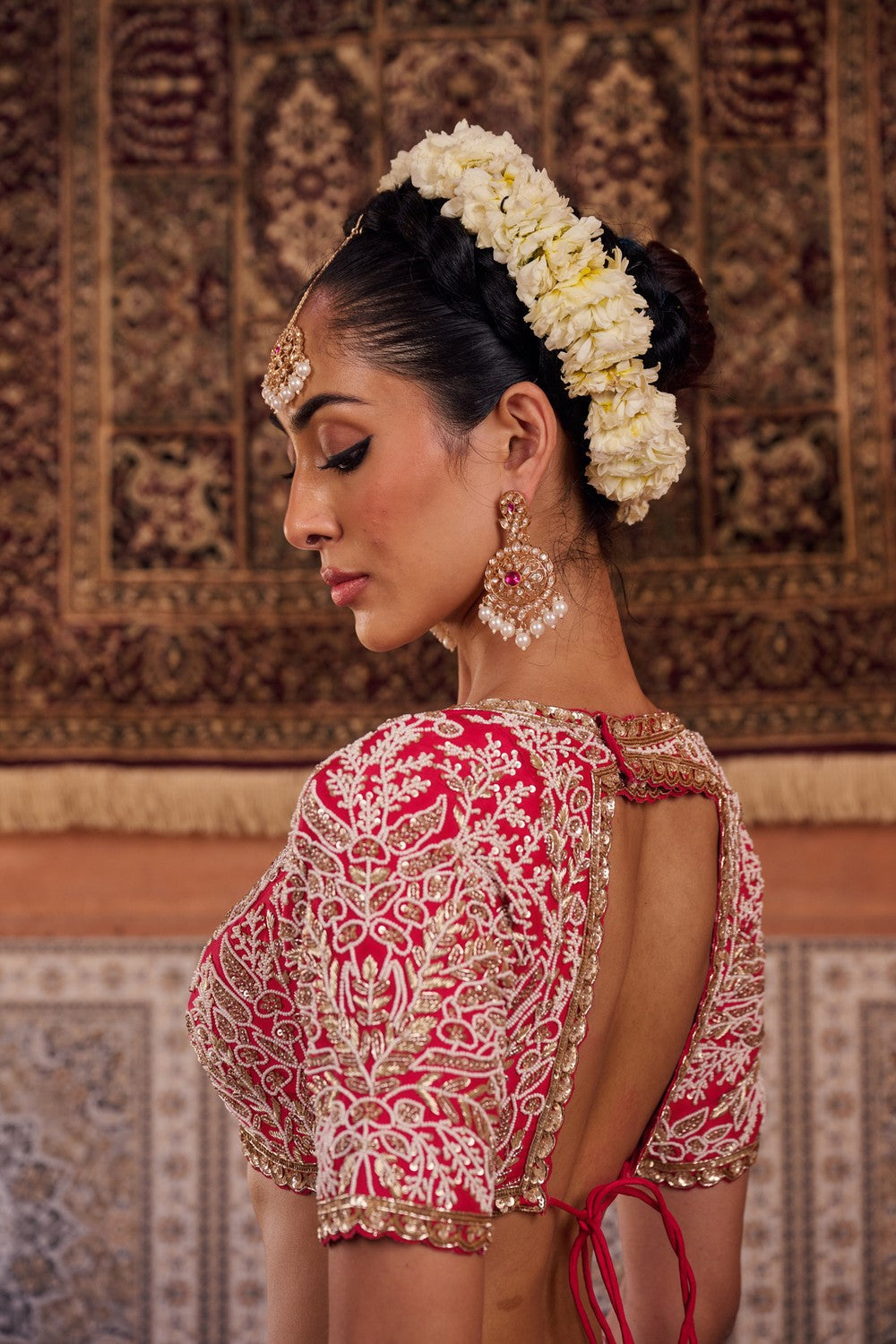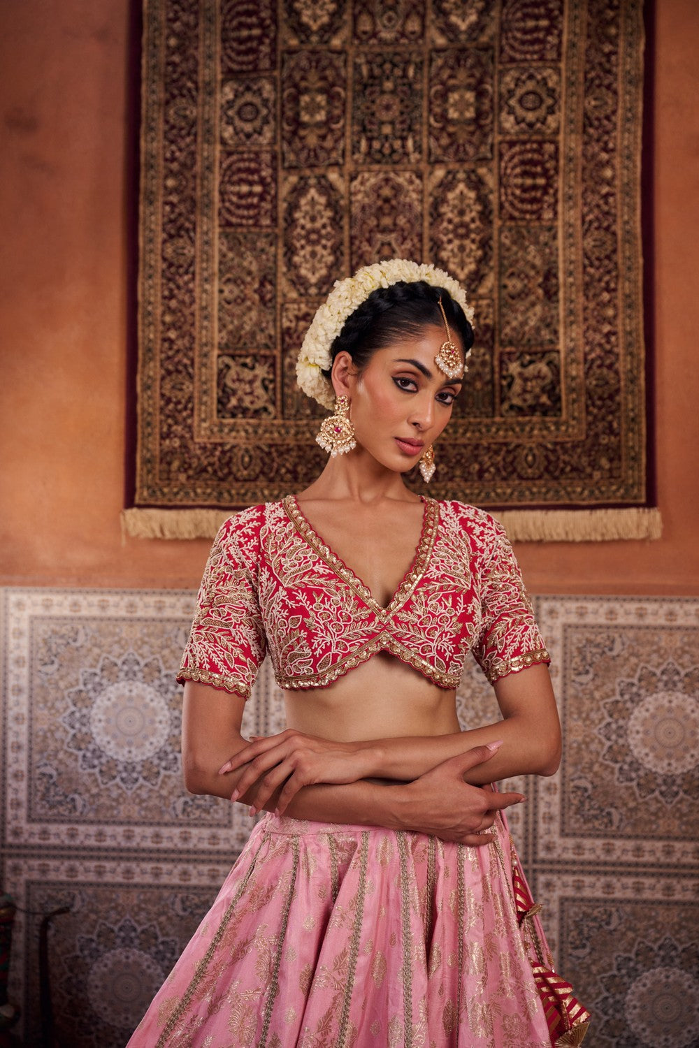 Blush pink and Fuchsia upada silk blouse, banarsi silk lehenga and dupatta