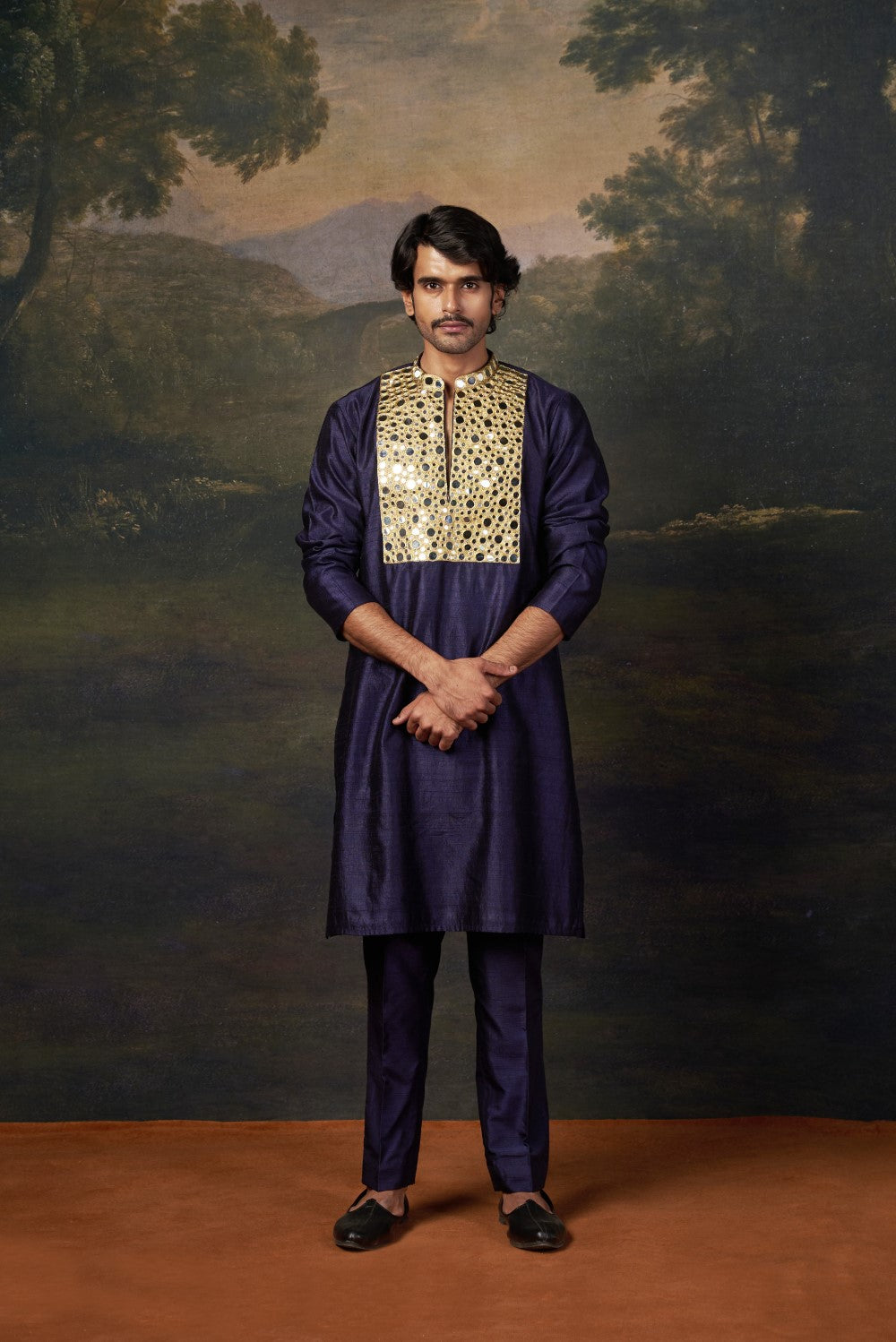 A regal fusion of tradition and contemporary elegance, this heavy mirror work kurta set is designed to make a grand statement. The intricate, hand-embellished mirror work creates a dazzling effect, while the luxurious fabric ensures comfort and sophistication. Paired with a matching pyjama, this ensemble is perfect for weddings, festive occasions, and grand celebrations.