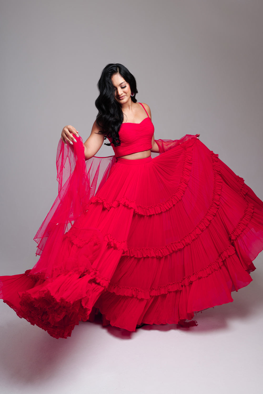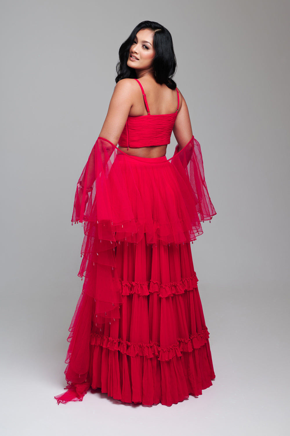 Feel fierce and powerful in this vibrant georgette rouched outfit