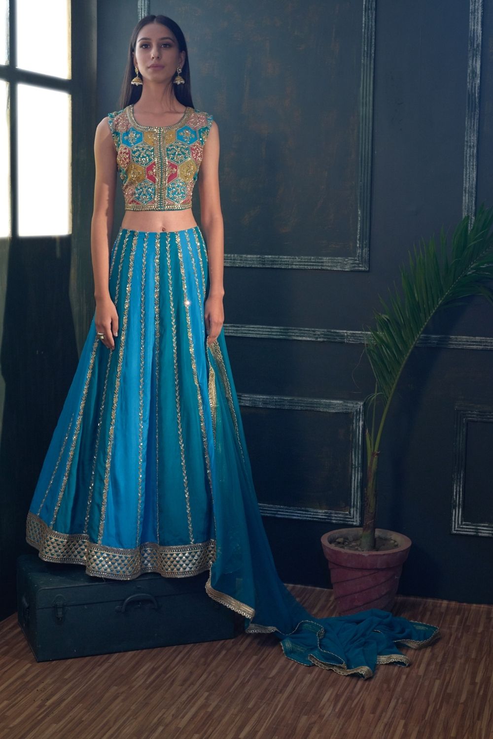 Emerald Green and Teal Blue Shaded Lehanga Set