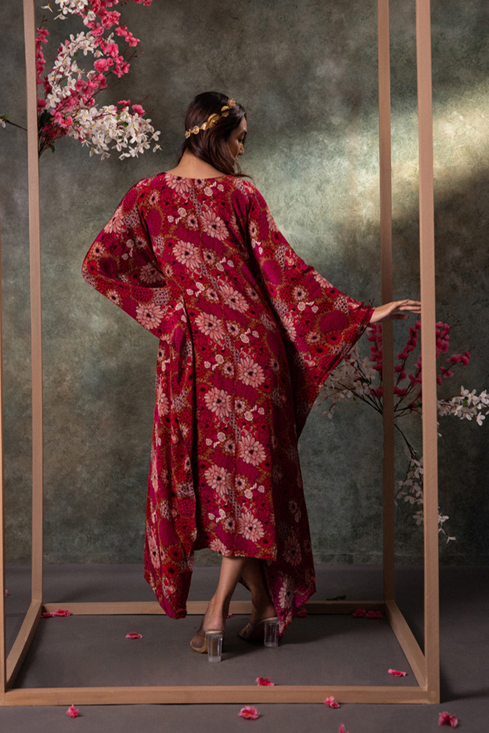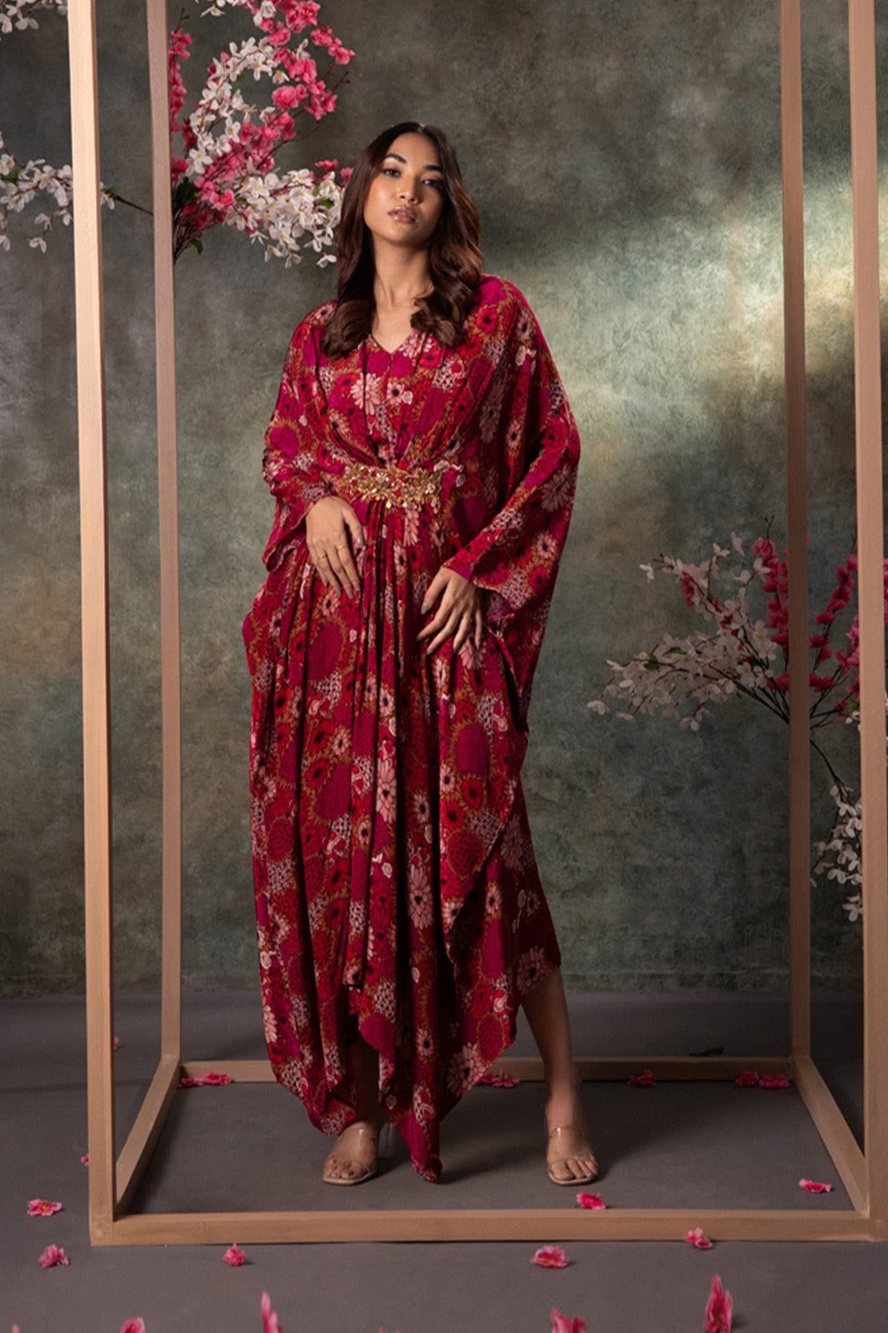 Brighten up your wardrobe with this pink floral printed kaftan, designed for effortless style and comfort. its style anf fabric make it lightweight and breezy to wear.