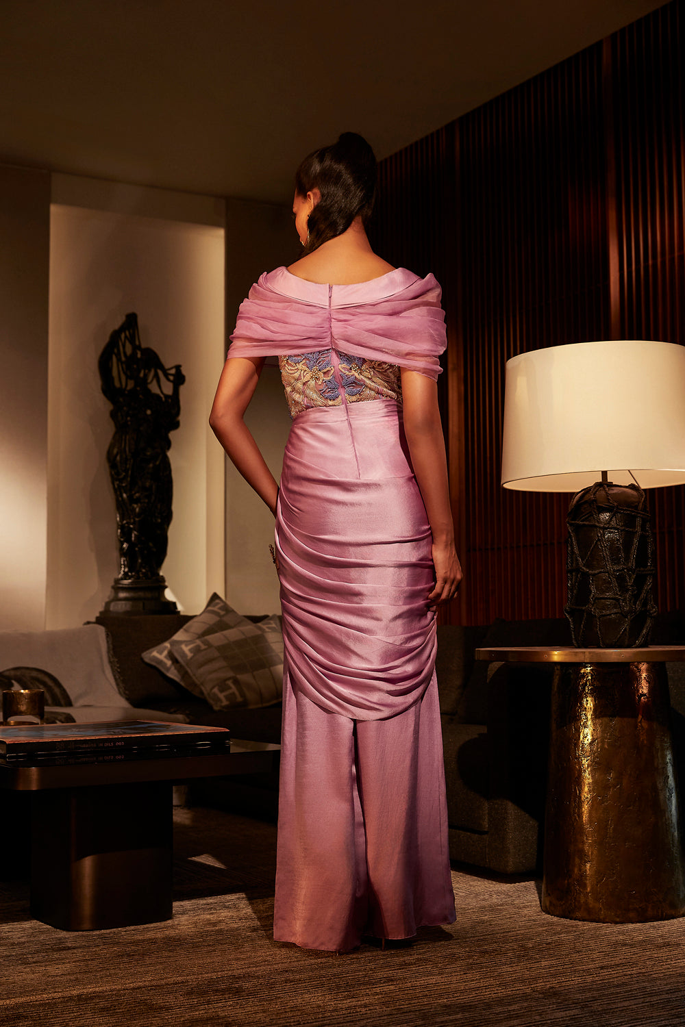 Lilac Drape Jumpsuit With Statement Organza Sleeves