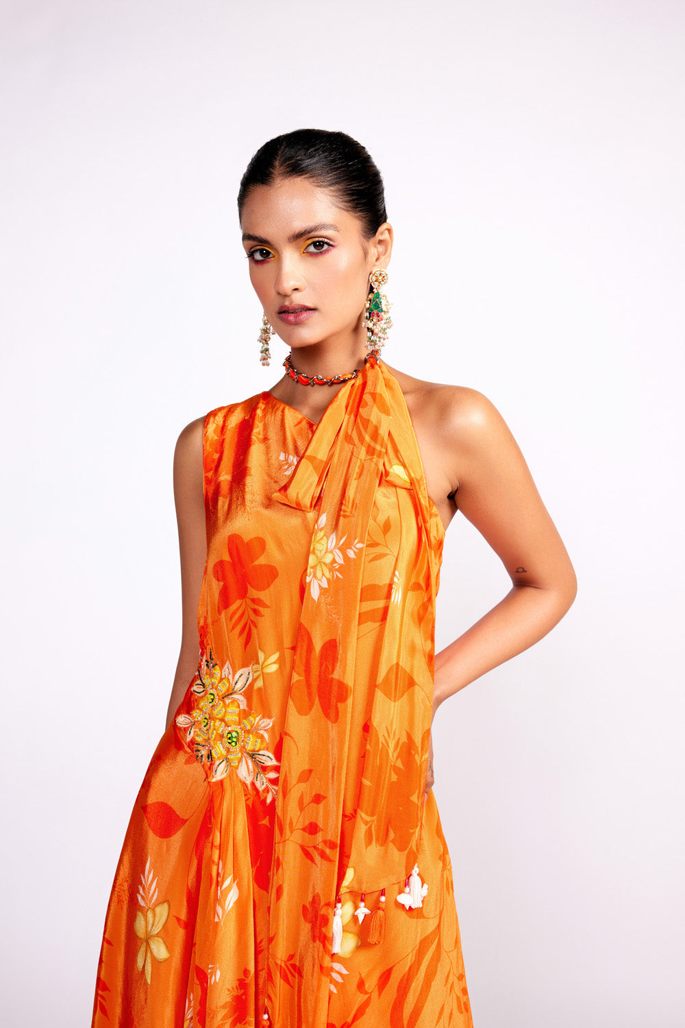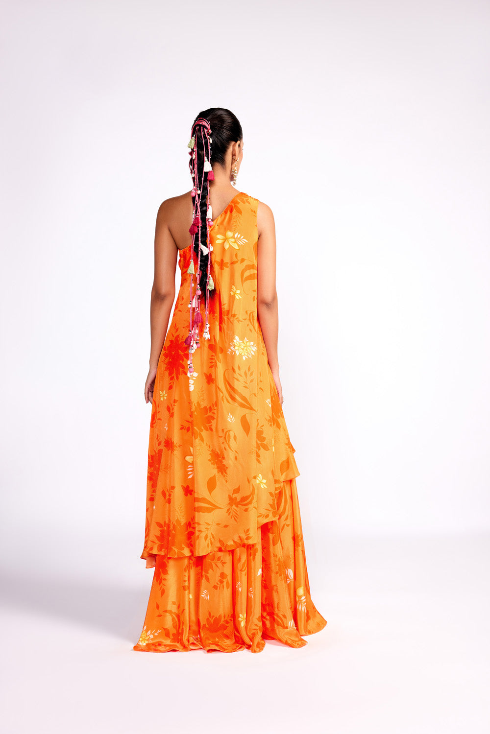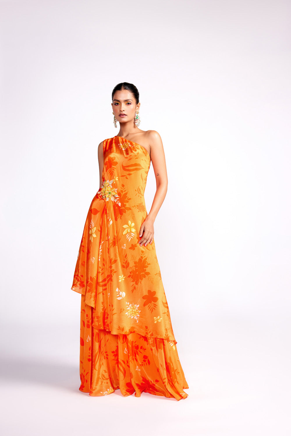 Tangerine Orange One Shoulder Sharara Set