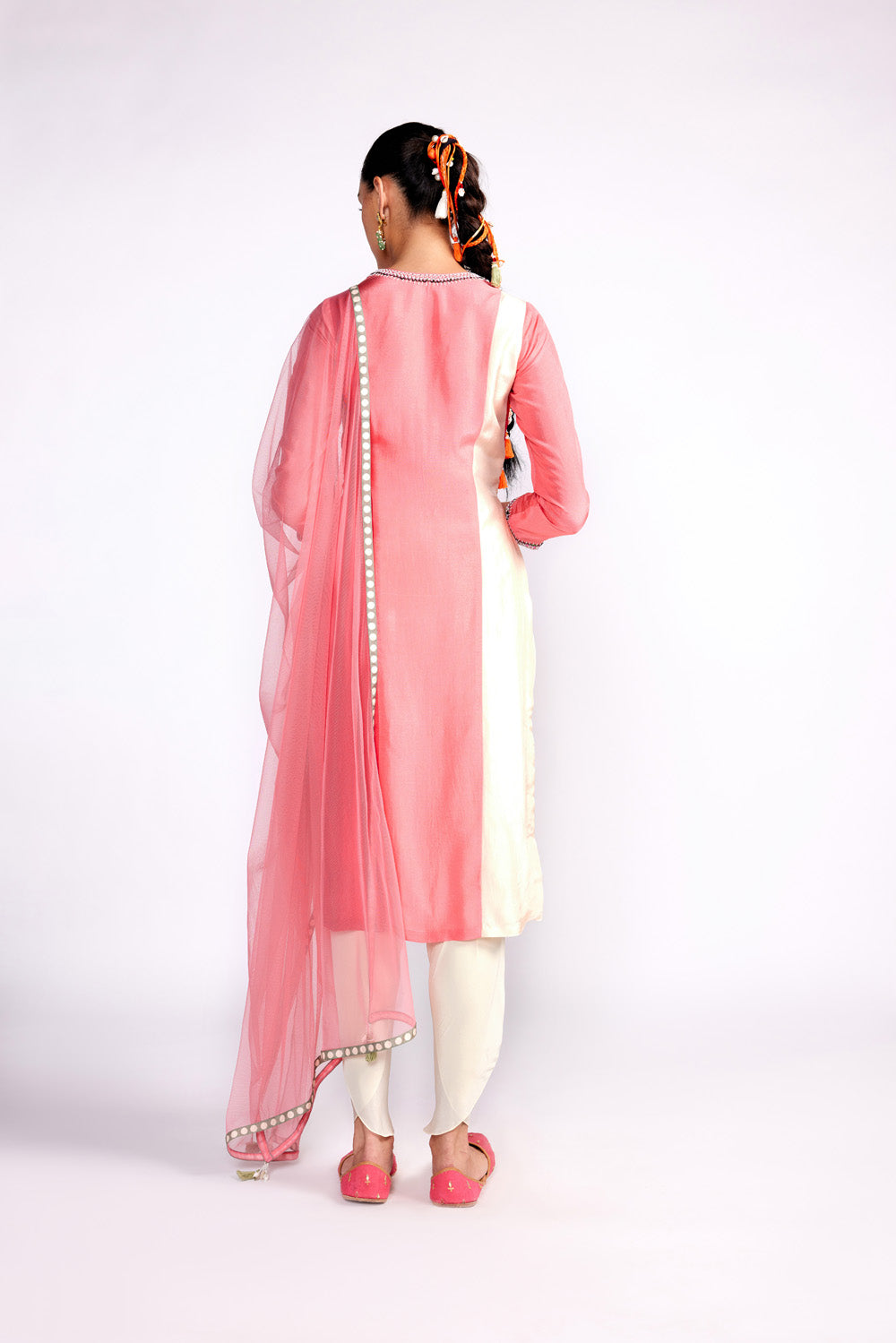 Flamingo Pink Color Block Kurta Set