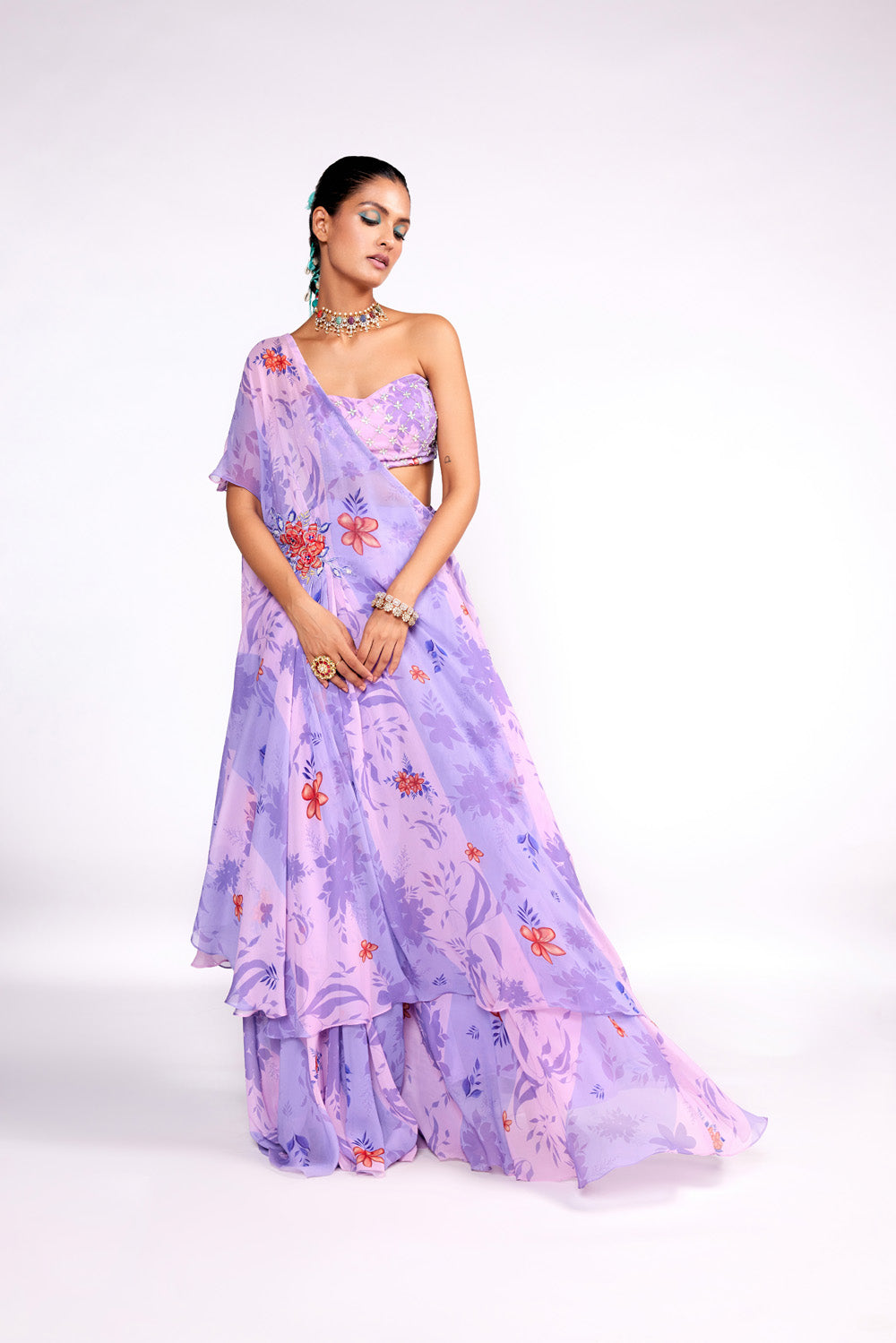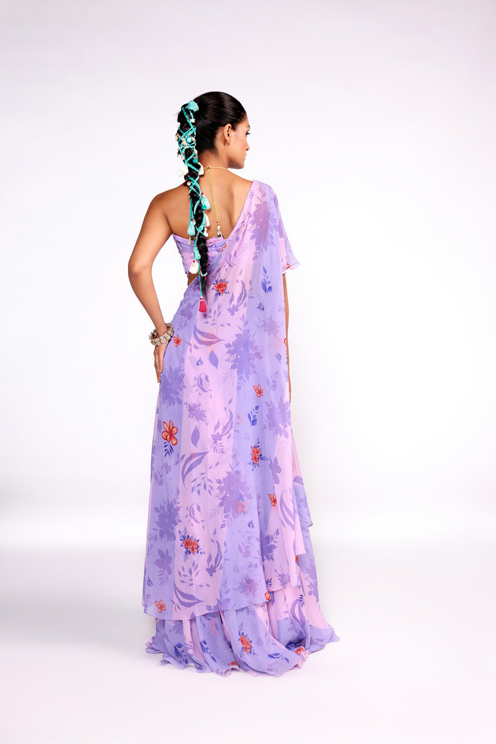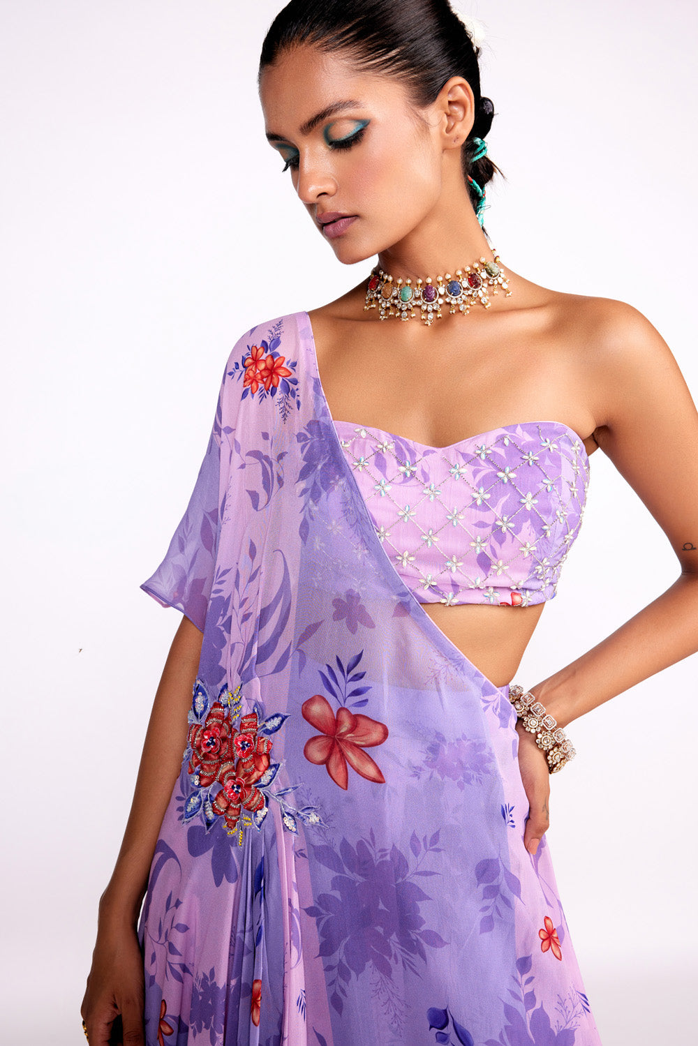 encrusted with a 3d floral patch. it is paired with an embroidered
