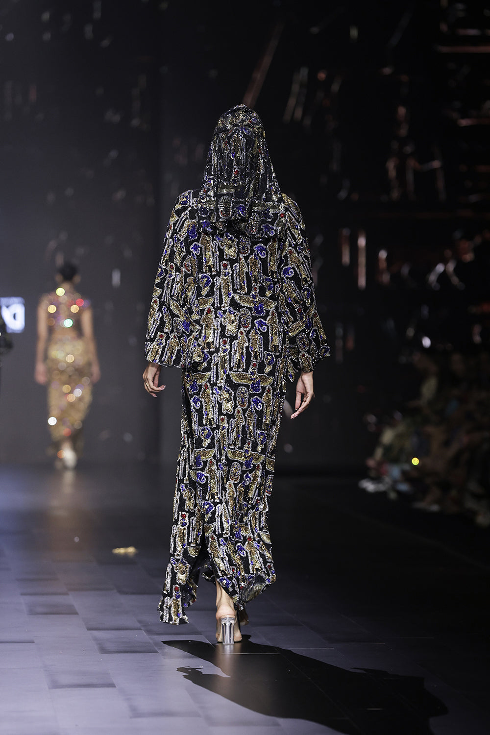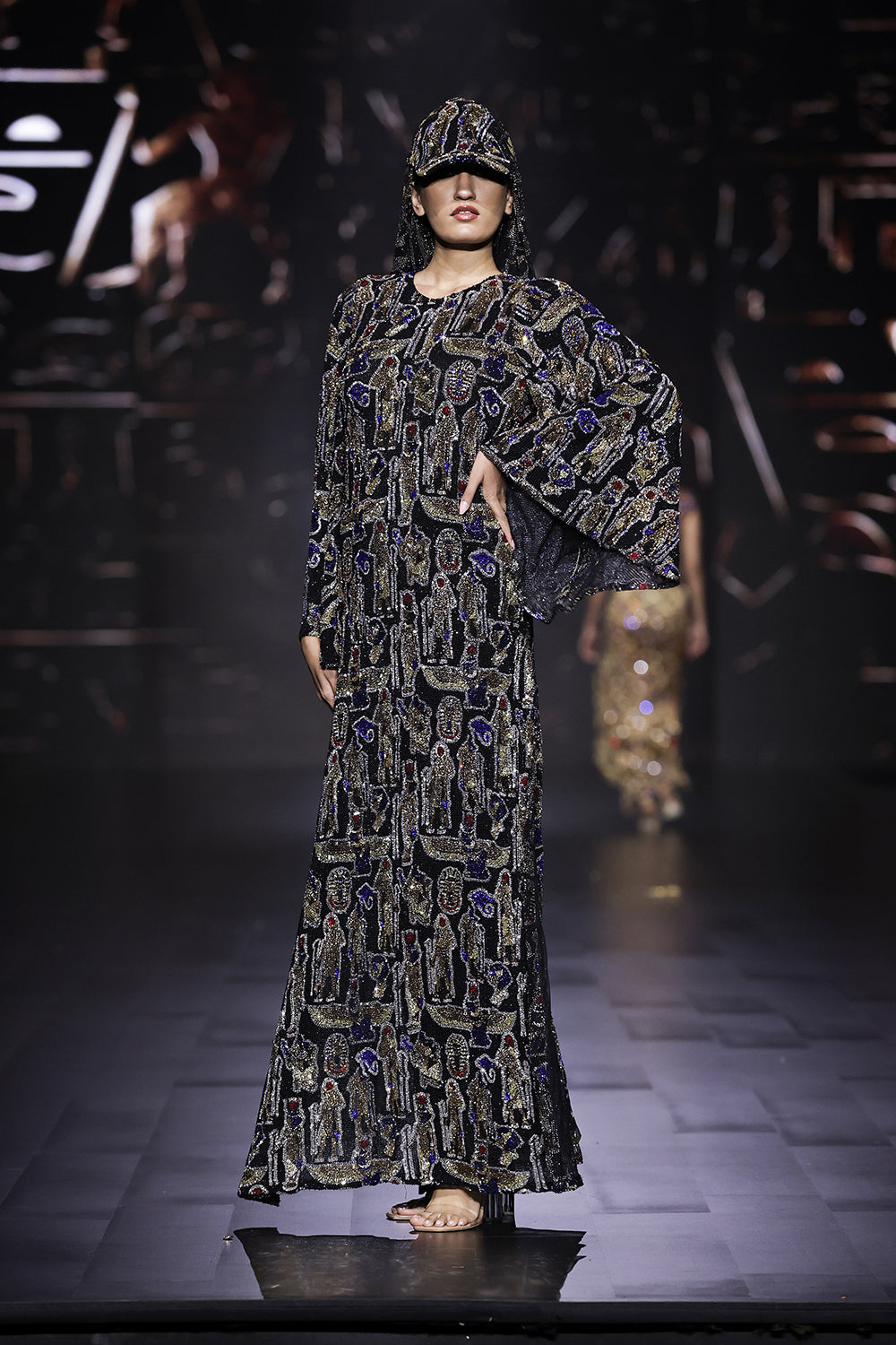 Indulge in the epitome of luxury and glamour with this exquisite kaftan dress. crafted with meticulous attention to detail, the dress features intricate crystal embellishments in the form of figurines, adding a touch of opulence and sophistication.