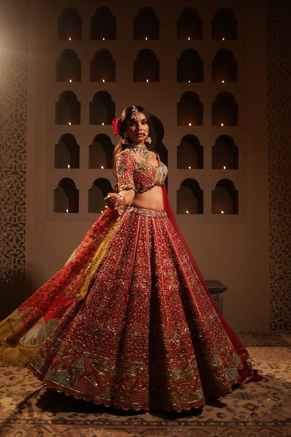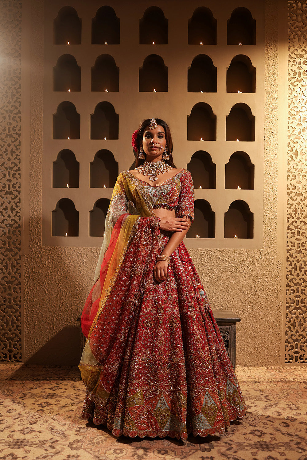 Fabric: Lehenga - Pure Silk , Blouse - Pure Silk, Dupatta -Net, Veil - Net