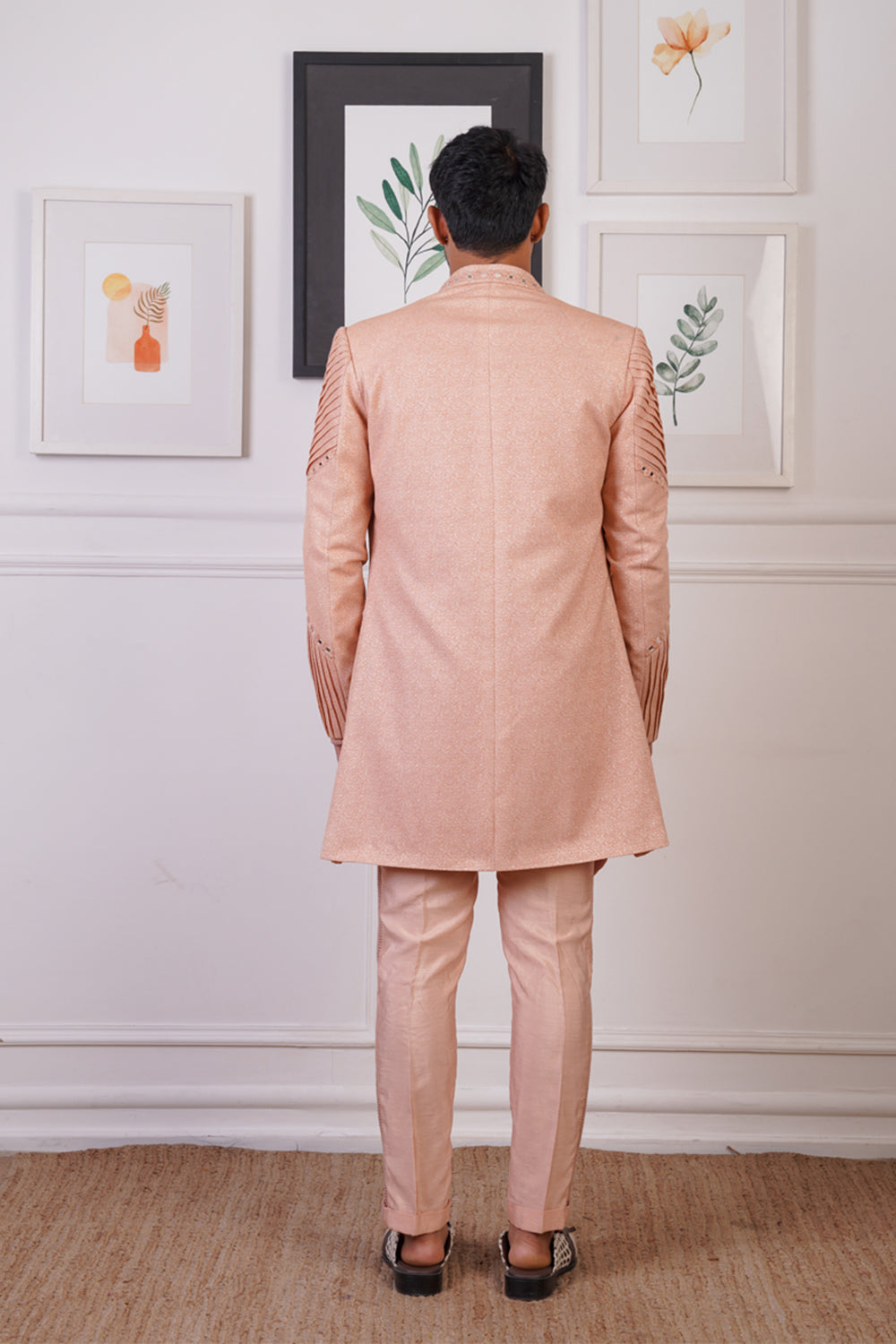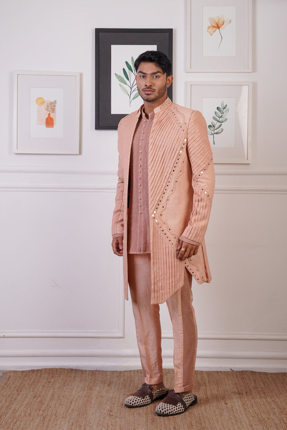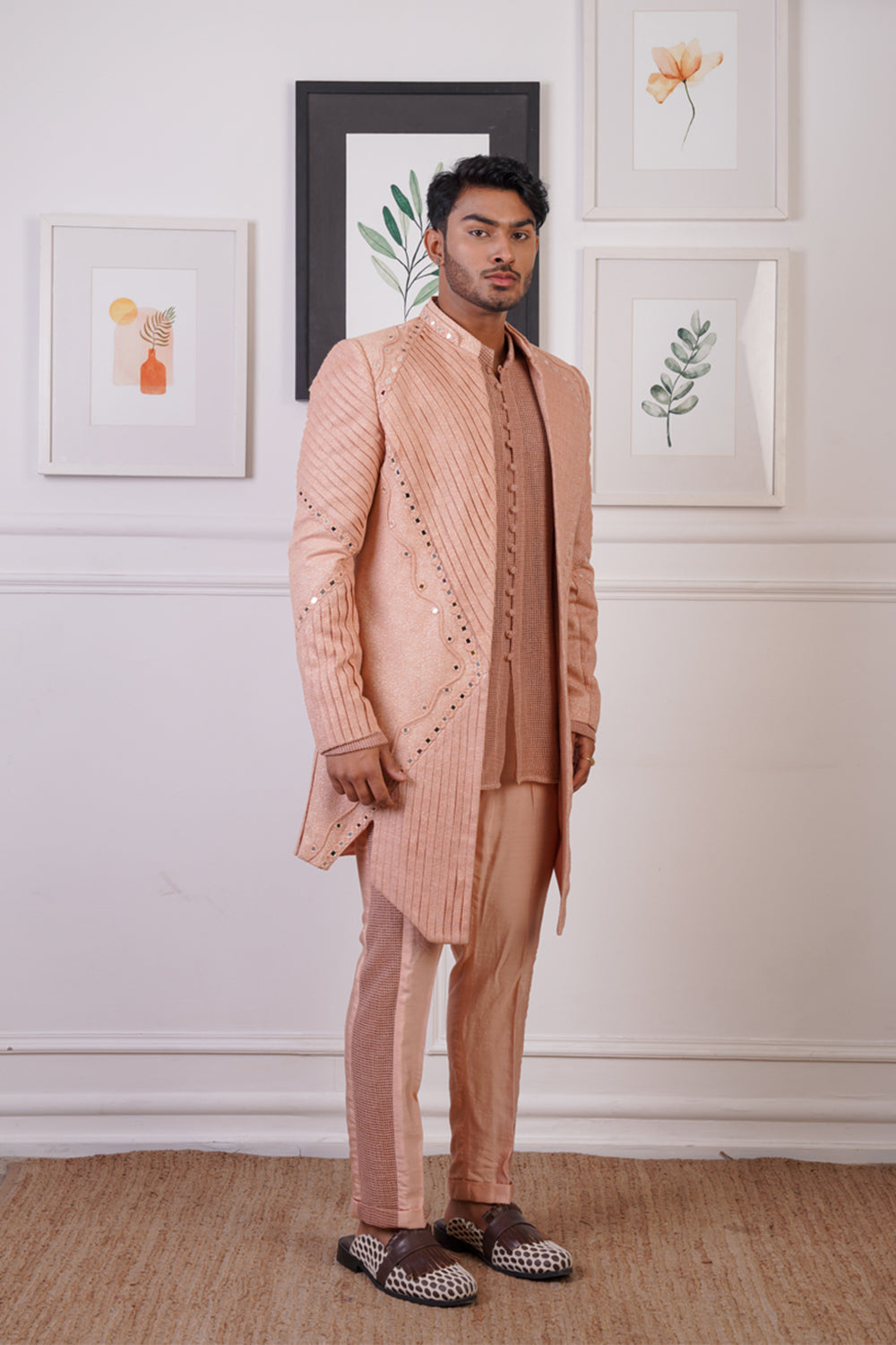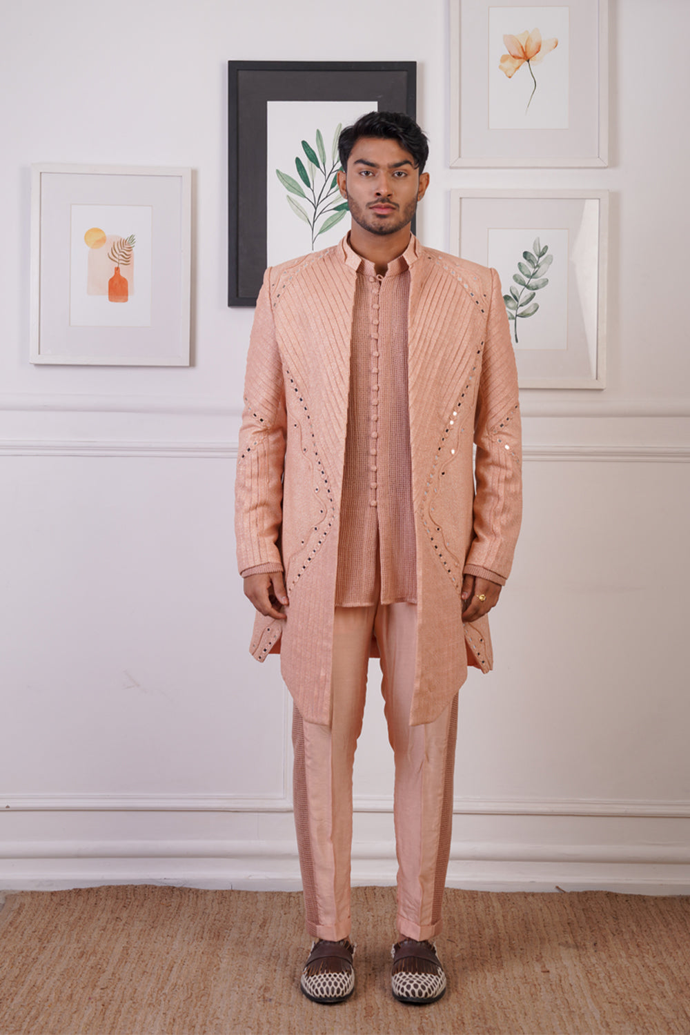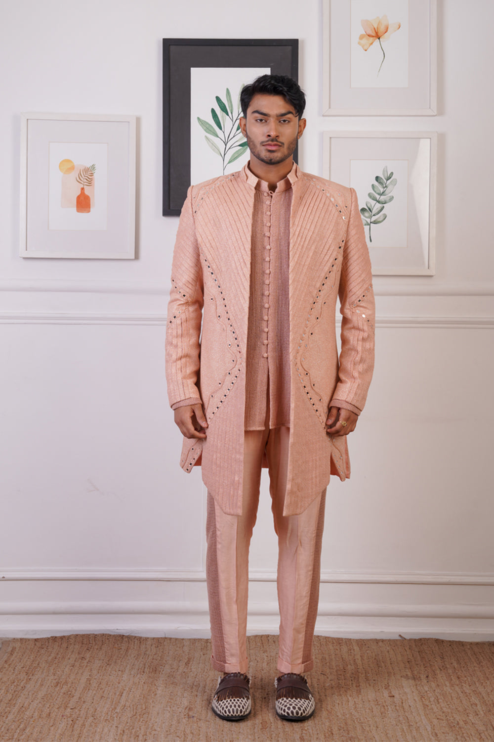 Reflex open indowestern jacket, paired with crochet shirt and pant pajama
