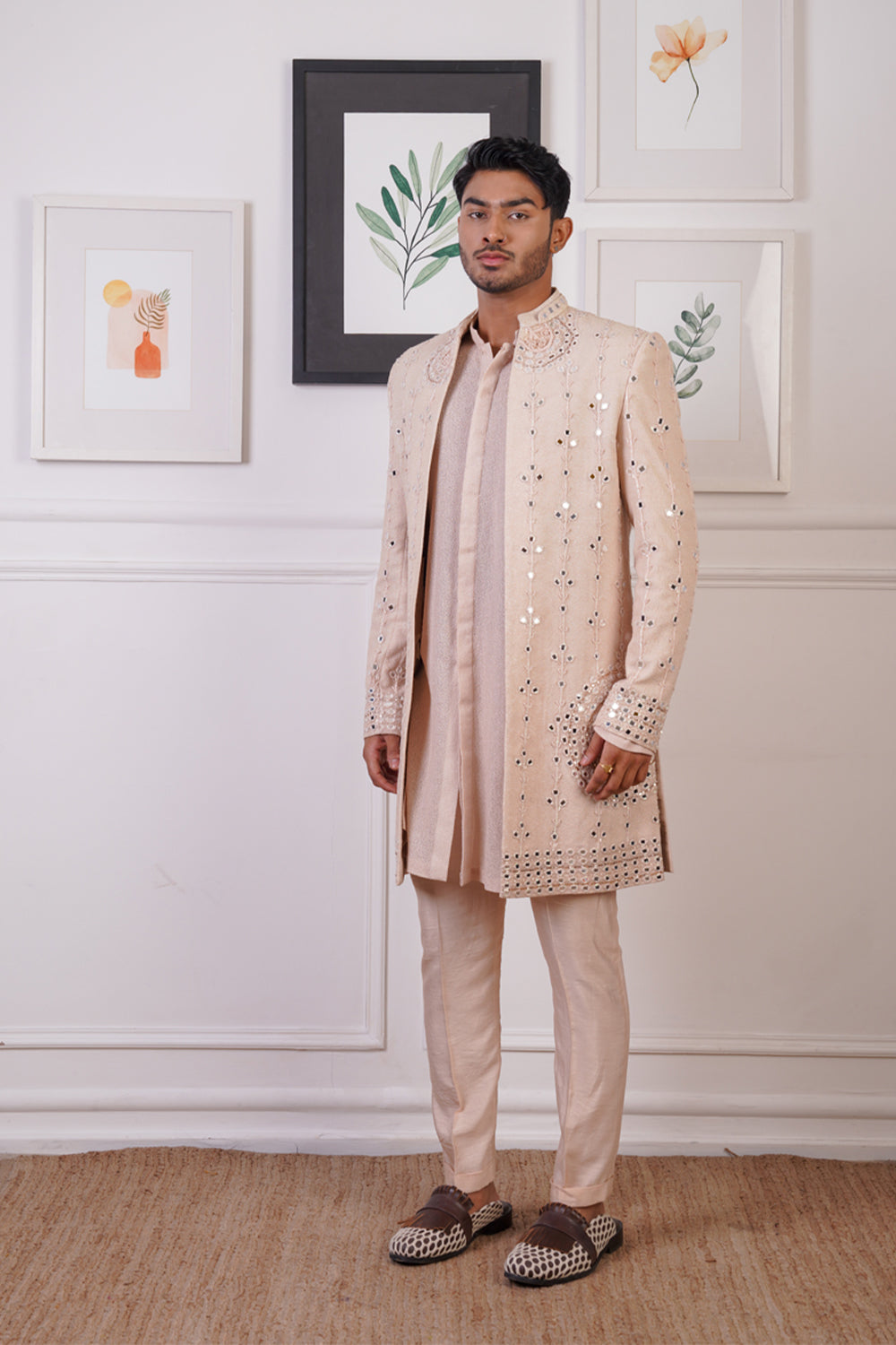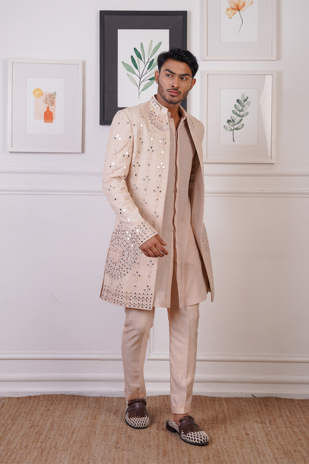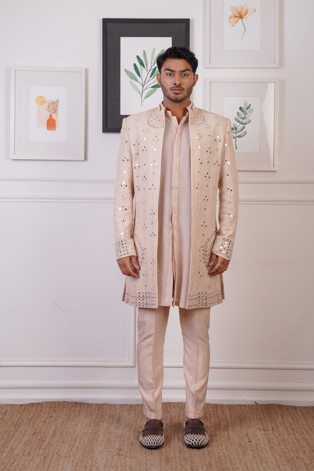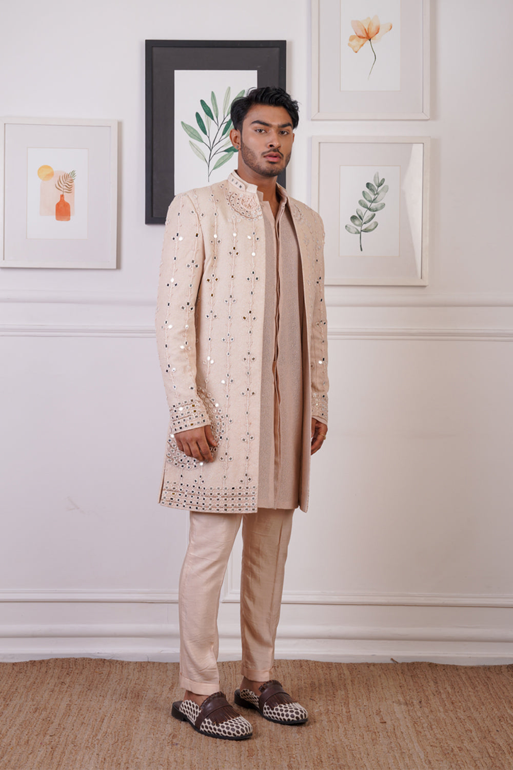 Rp open mirror indowestern set, paired with front open kurta and pant pajama
