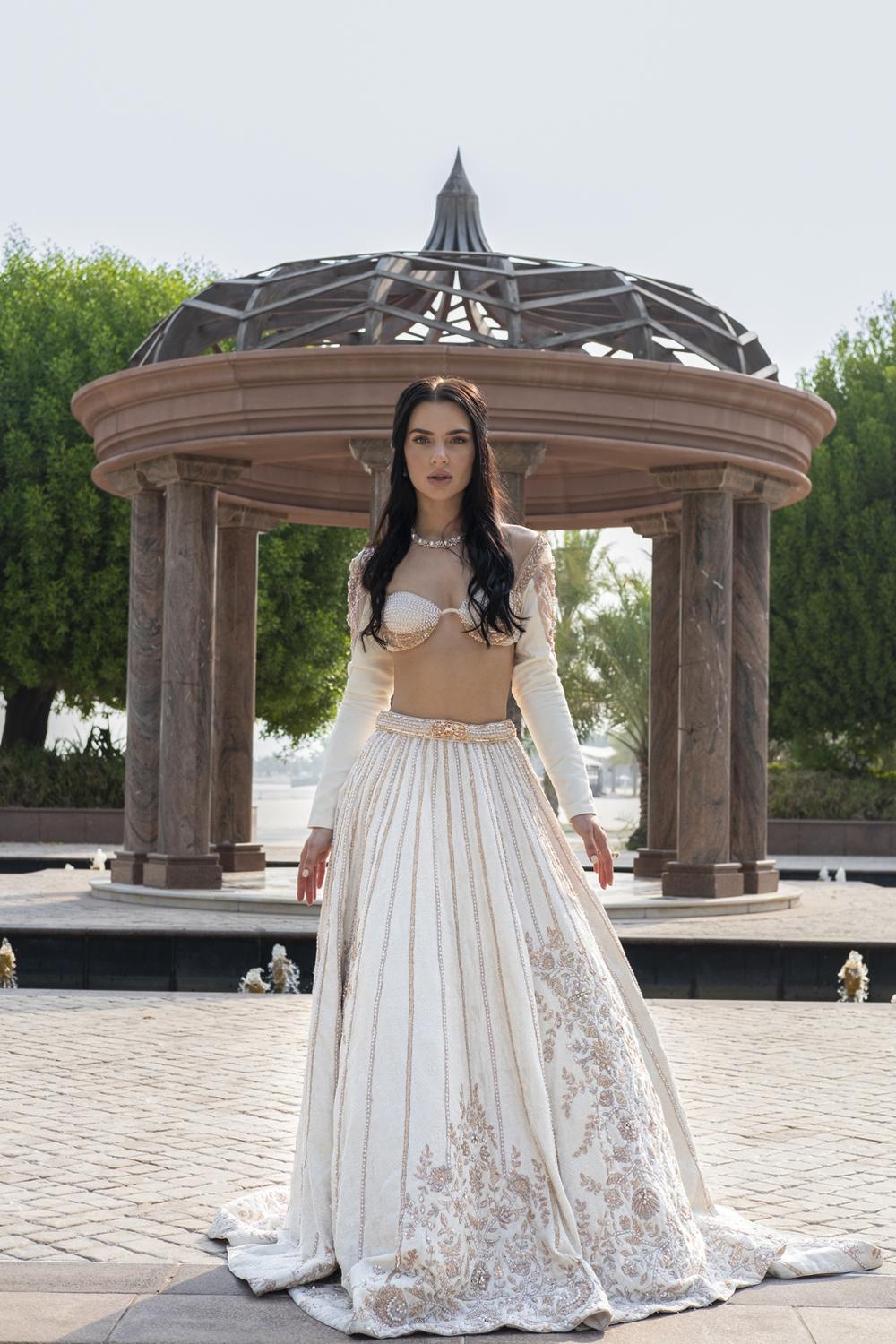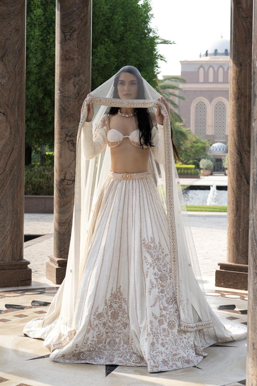 Pearl-Fection White Trail Lehenga Set