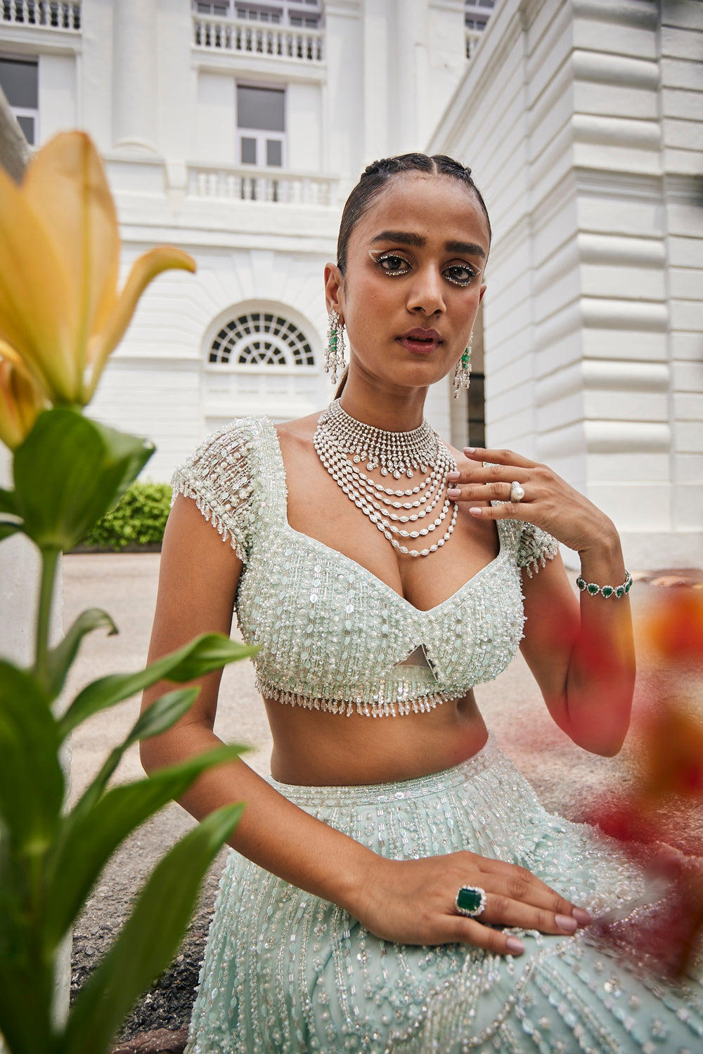Emboridery & Embellishments: Hand embroidered with tassels,cutdana,sequins,pearls