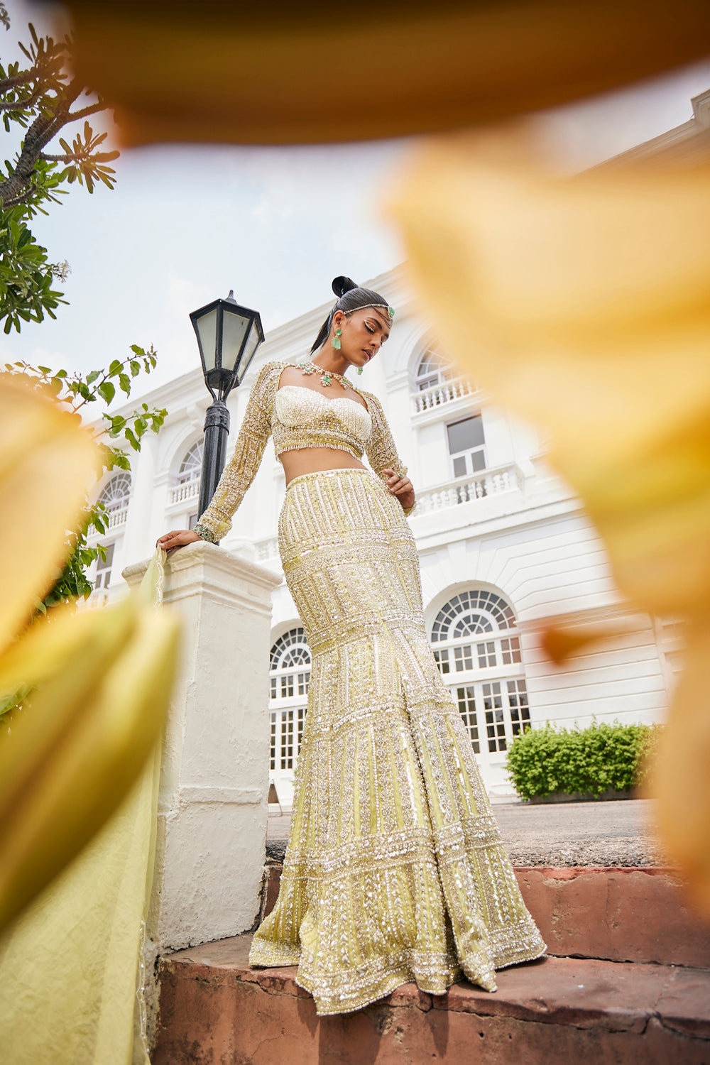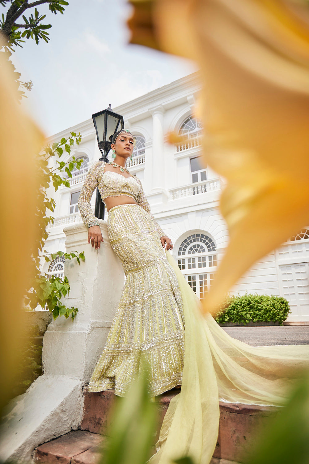 Emboridery & Embellishments: Hand embroidered with swaroski,pearls,sequins,cutdana