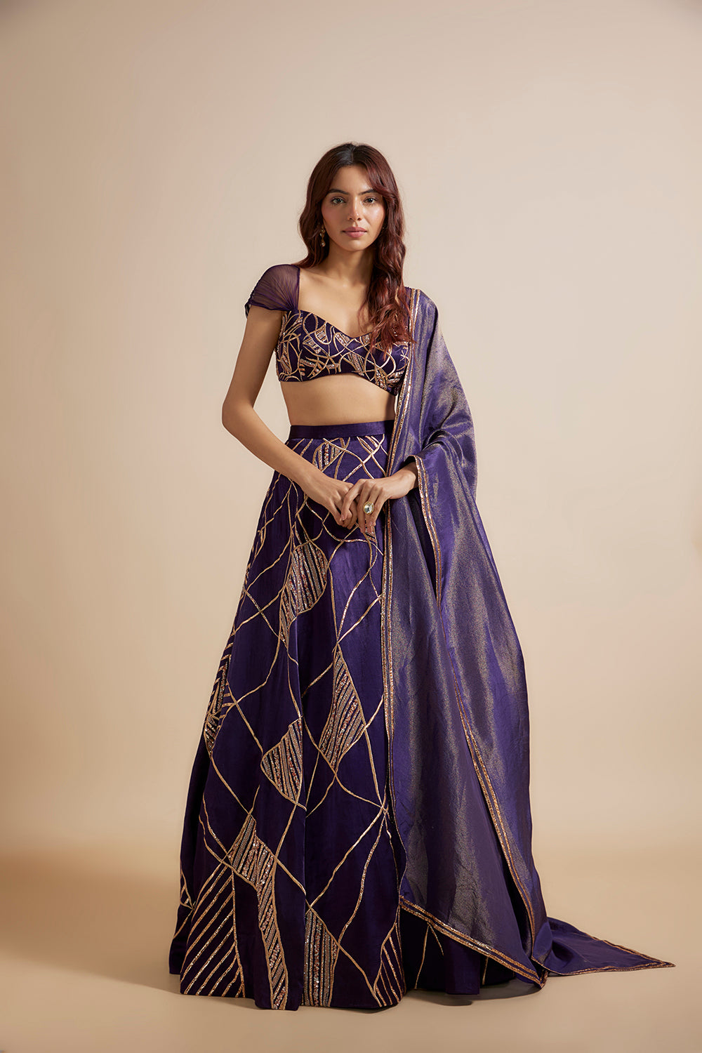 Deep Purple Embroidered Lehenga Set