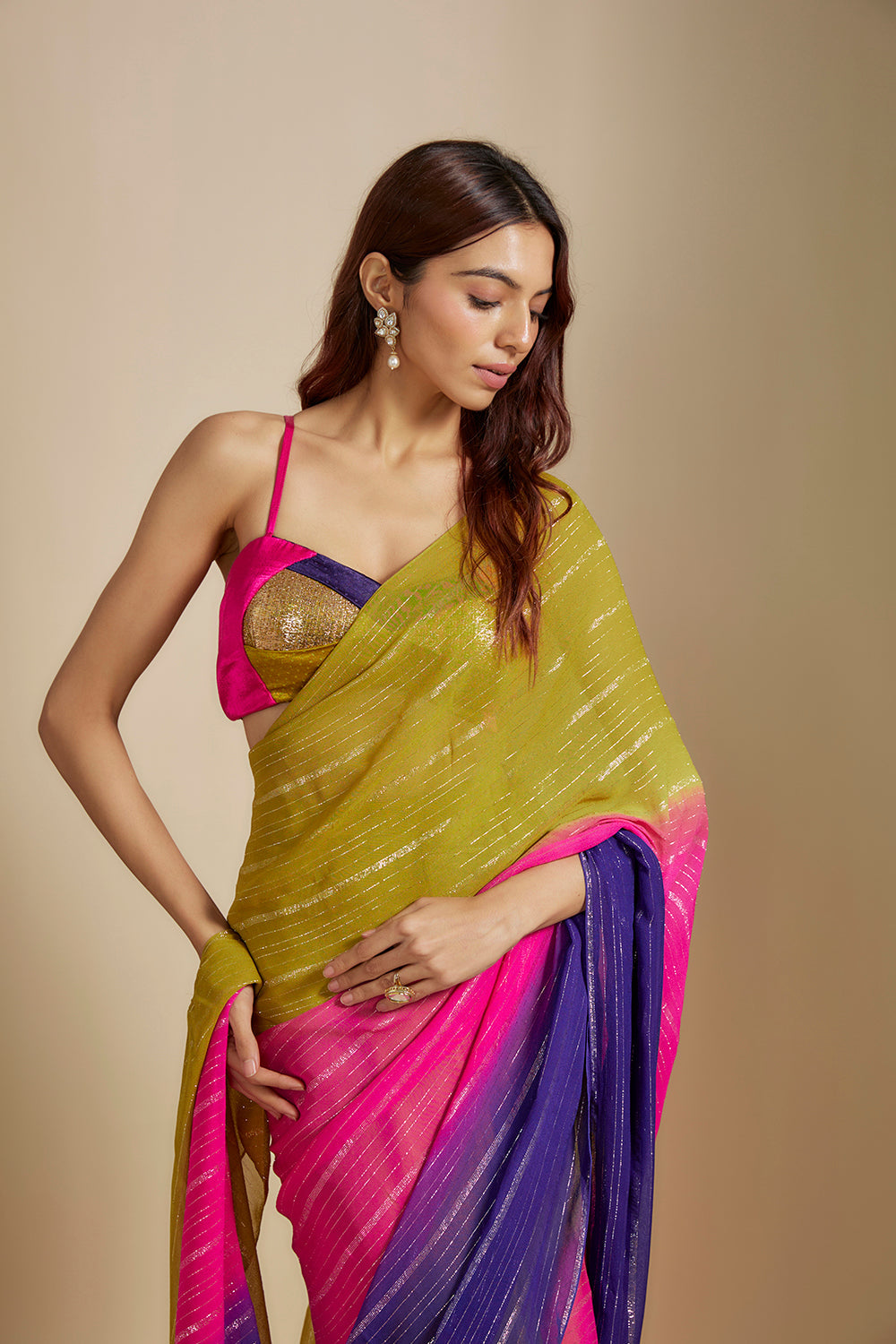 Mustard Ombre Saree With Multi-Coloured Blouse