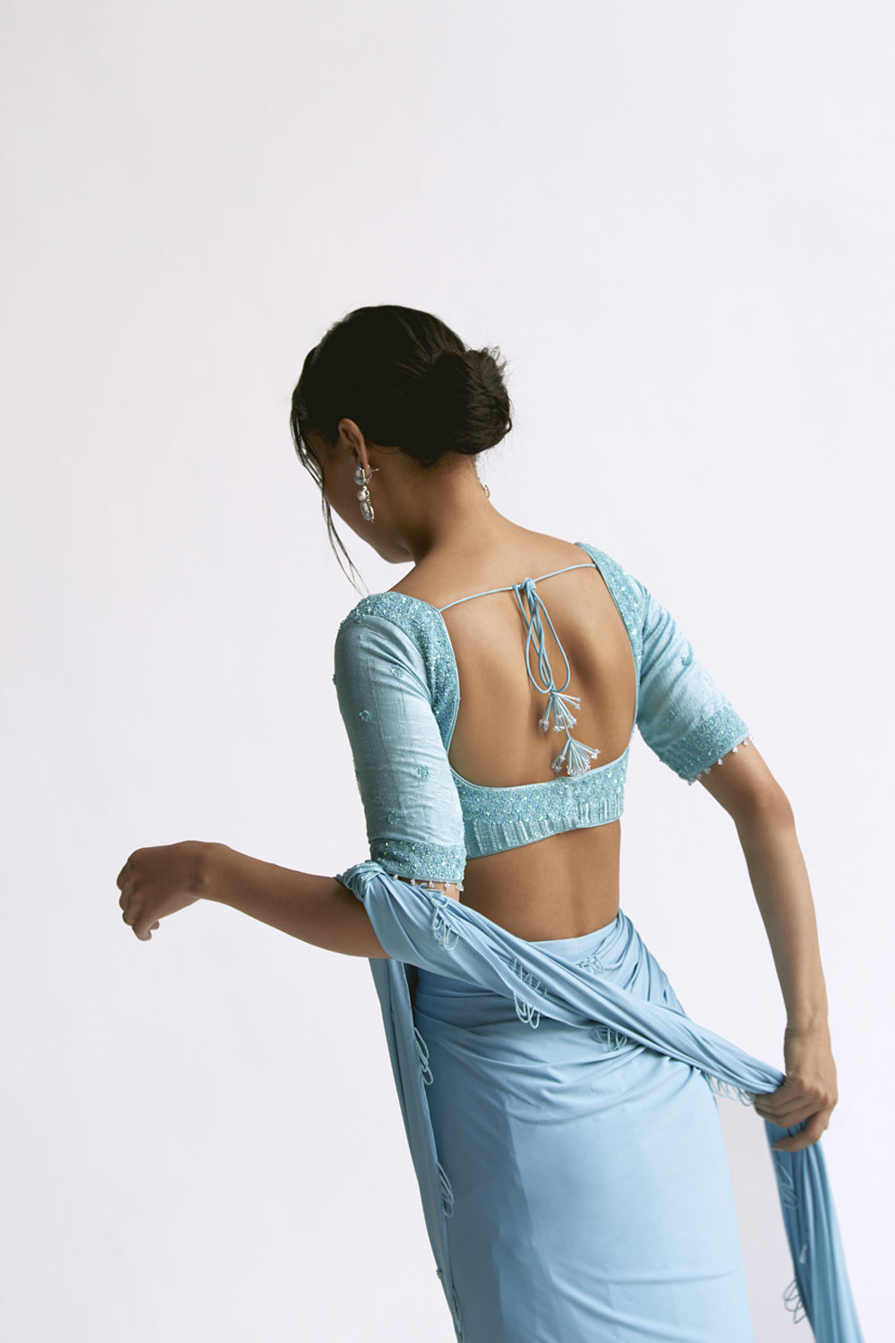 Corset style midi dress with poofed hem, styled addionally with big bow detail at the back