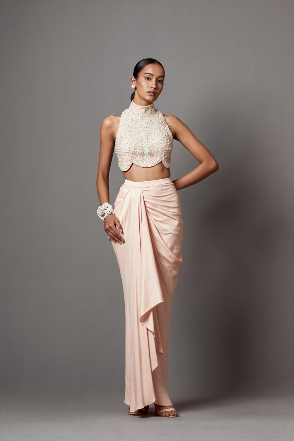 Drape skirt + blouse pastel pink