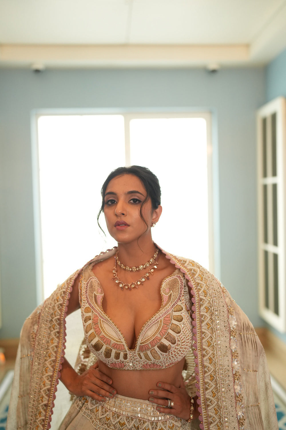 Ivory Silk Hand Embroidered Lehenga Set