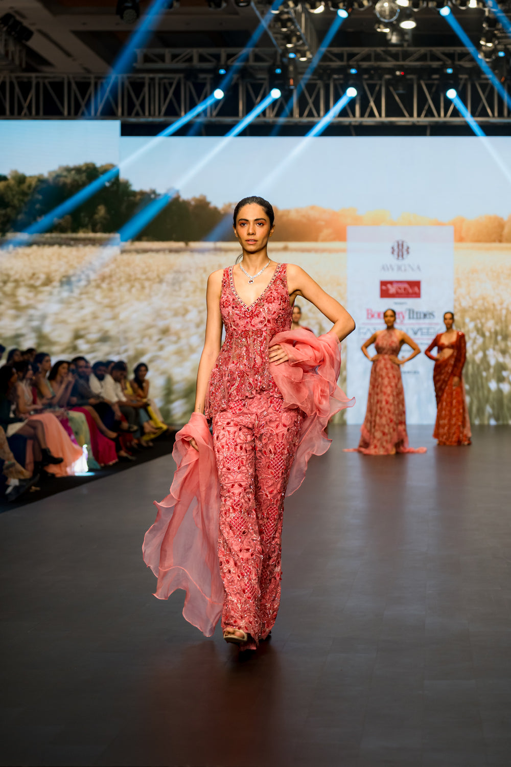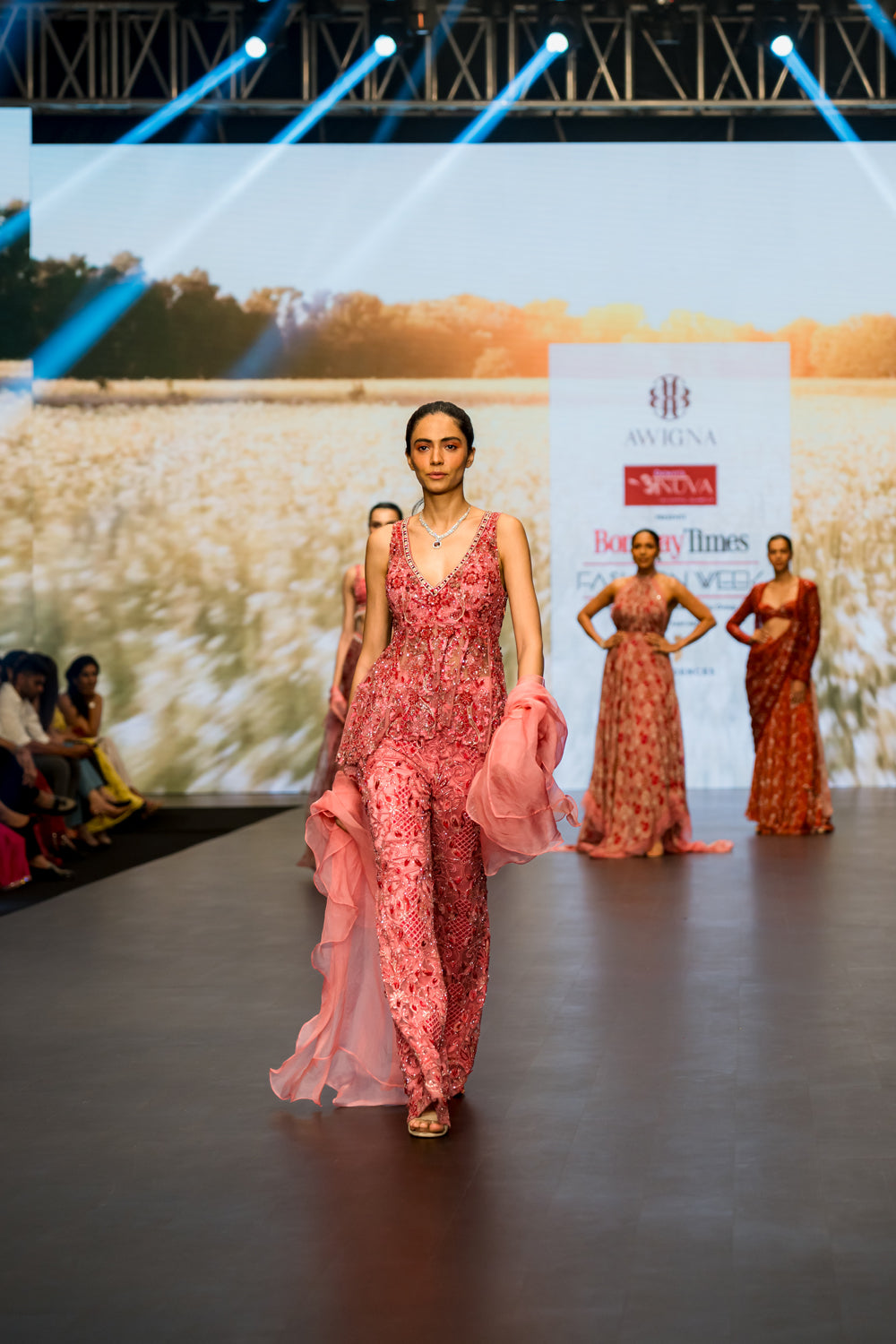 Pink heavy embroidered peplum paired with embroidered pants