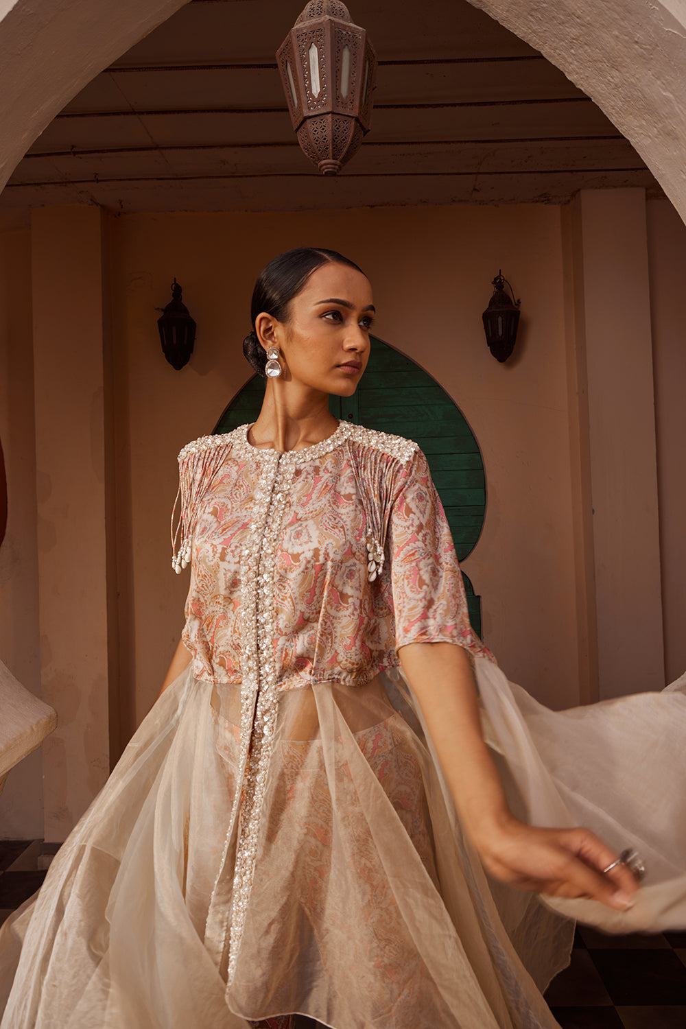 Fabric: Organza,Beige Print,Lining - Shantoon