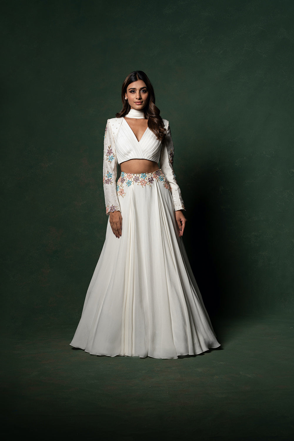 Fabric: Shell: Viscose crepe Georgette, viscose flat silk. Lining: santoon
