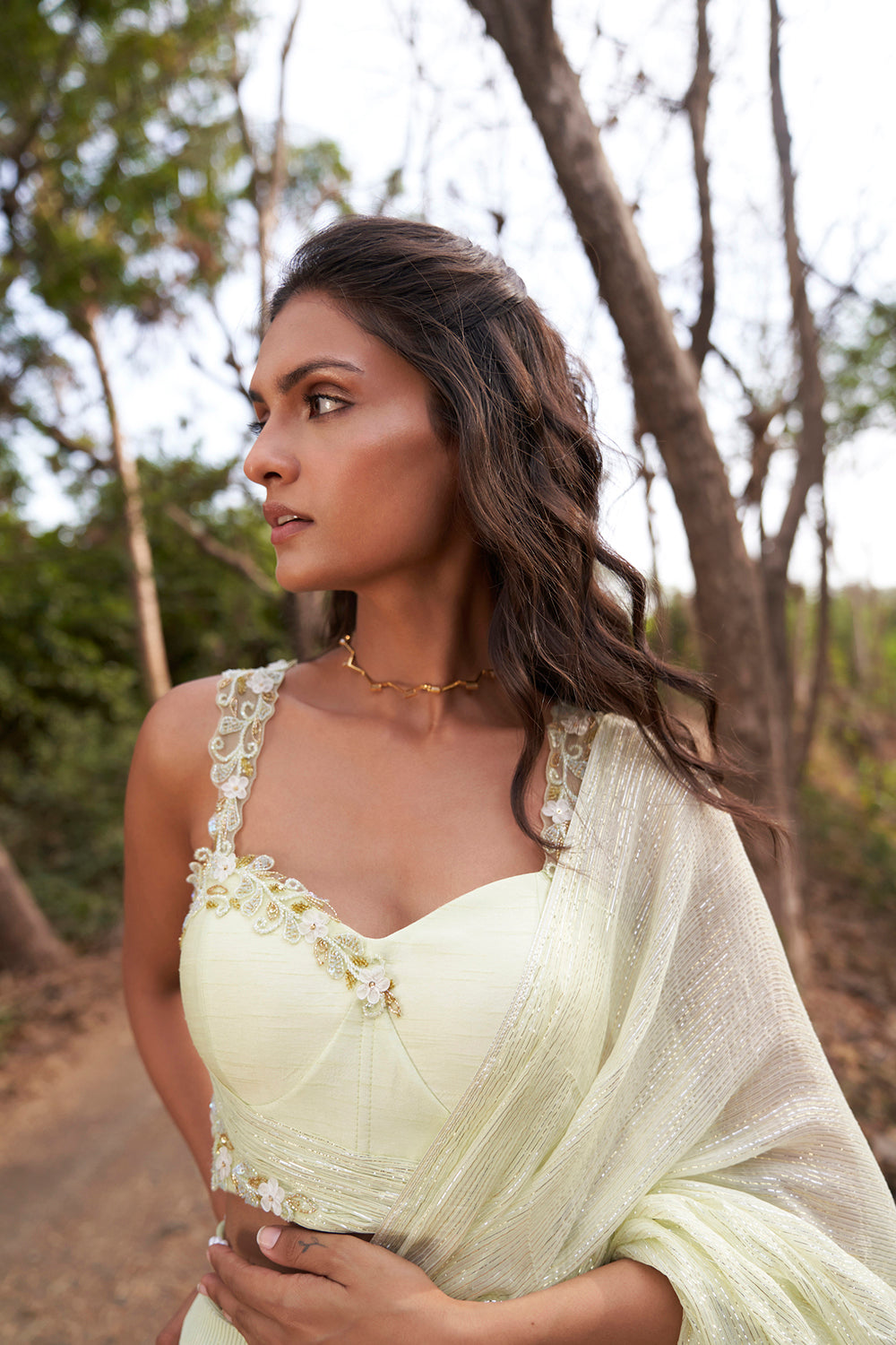 Fabric: Blouse: Viscose flat silk, Saree: Viscose Chiffon Lurex, Lining: Santoon