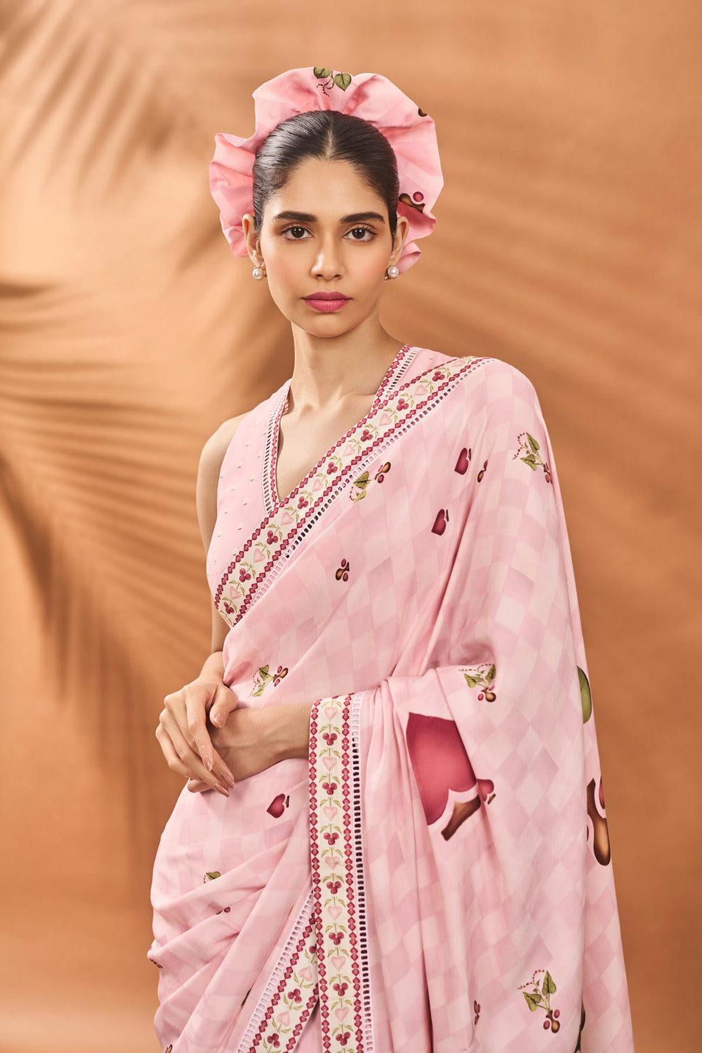 PINK CHECKERS SPADE BLOOM SAREE
