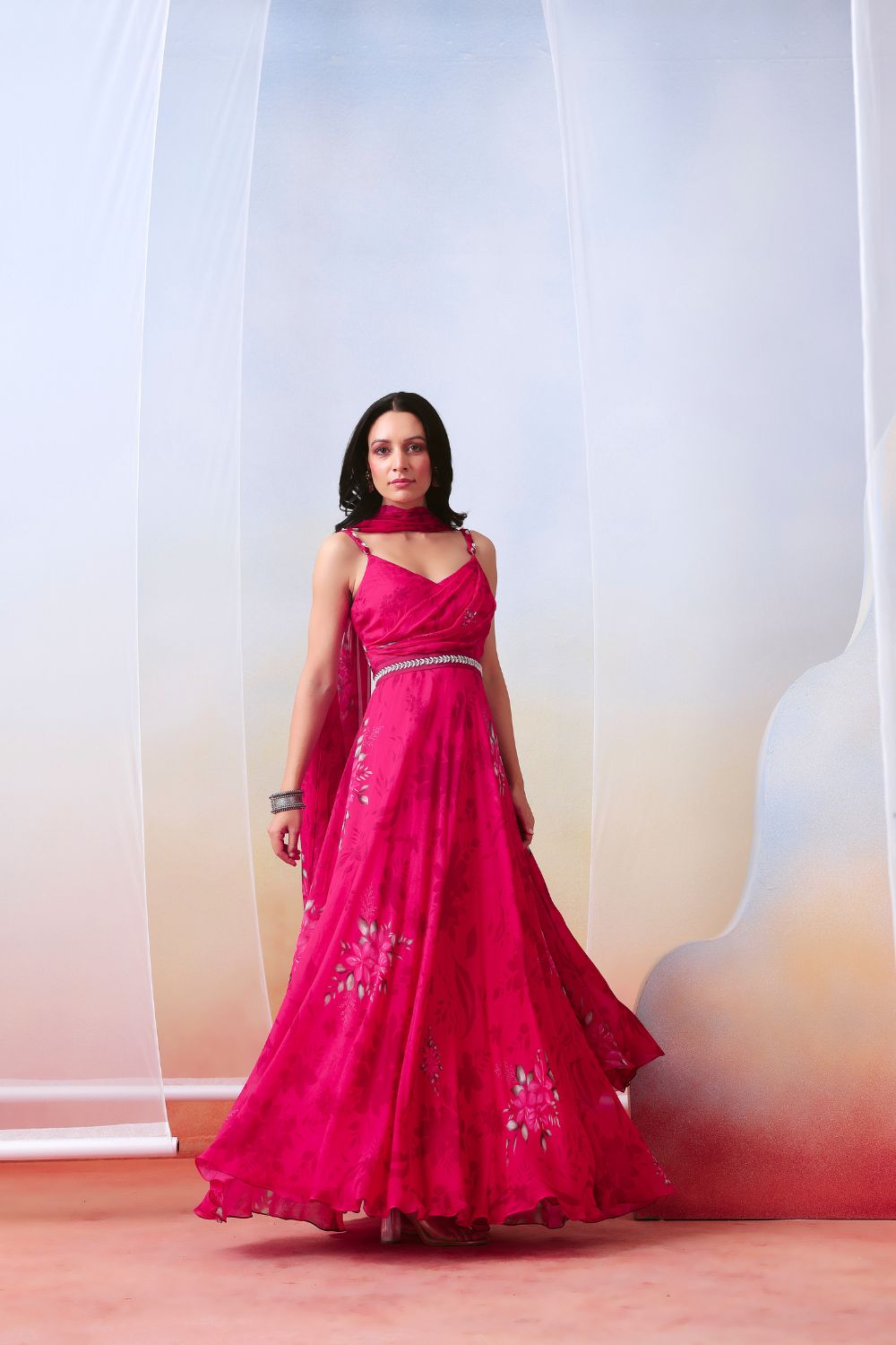 Featured Here Is A Pink Printed Drape Anarkali Set