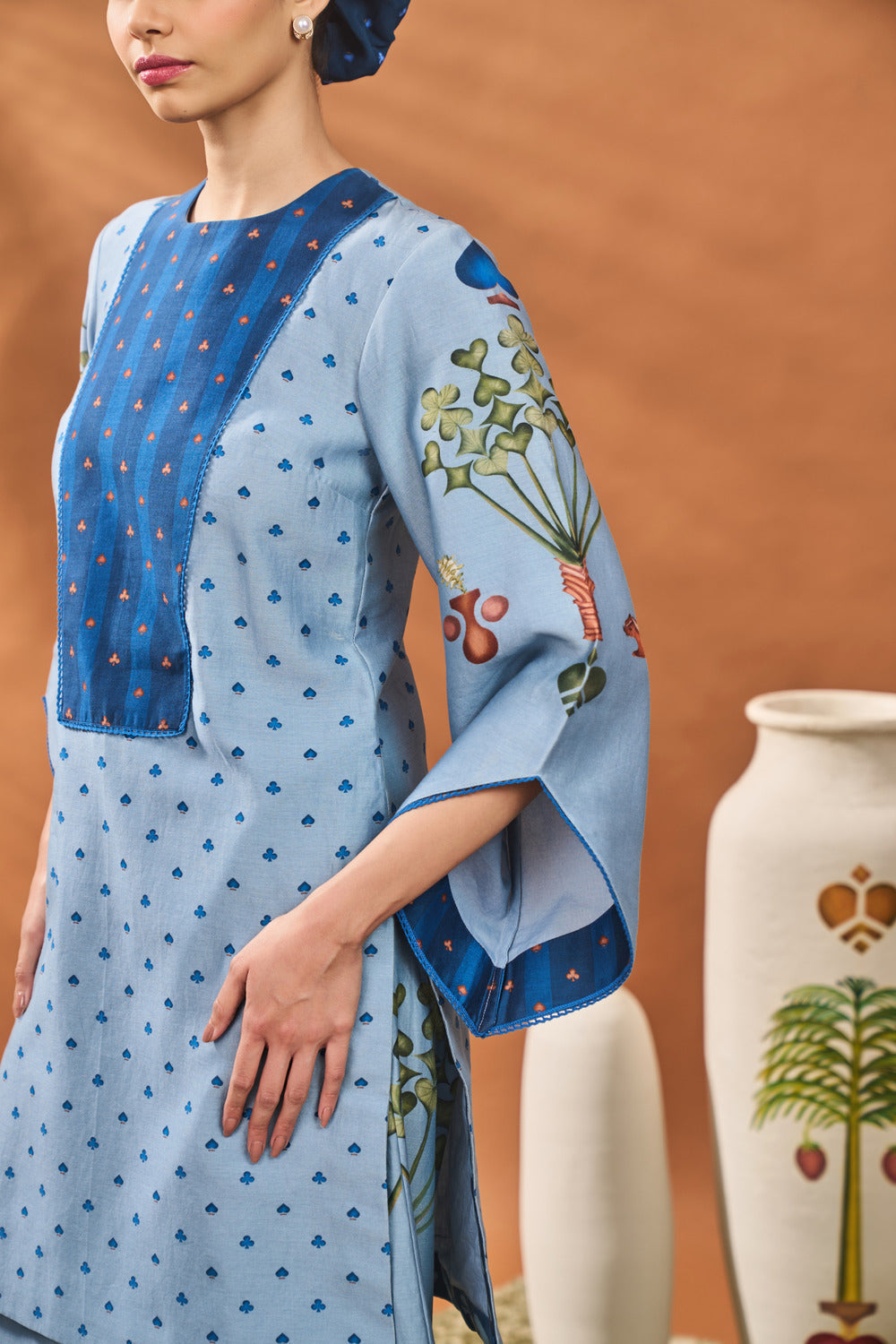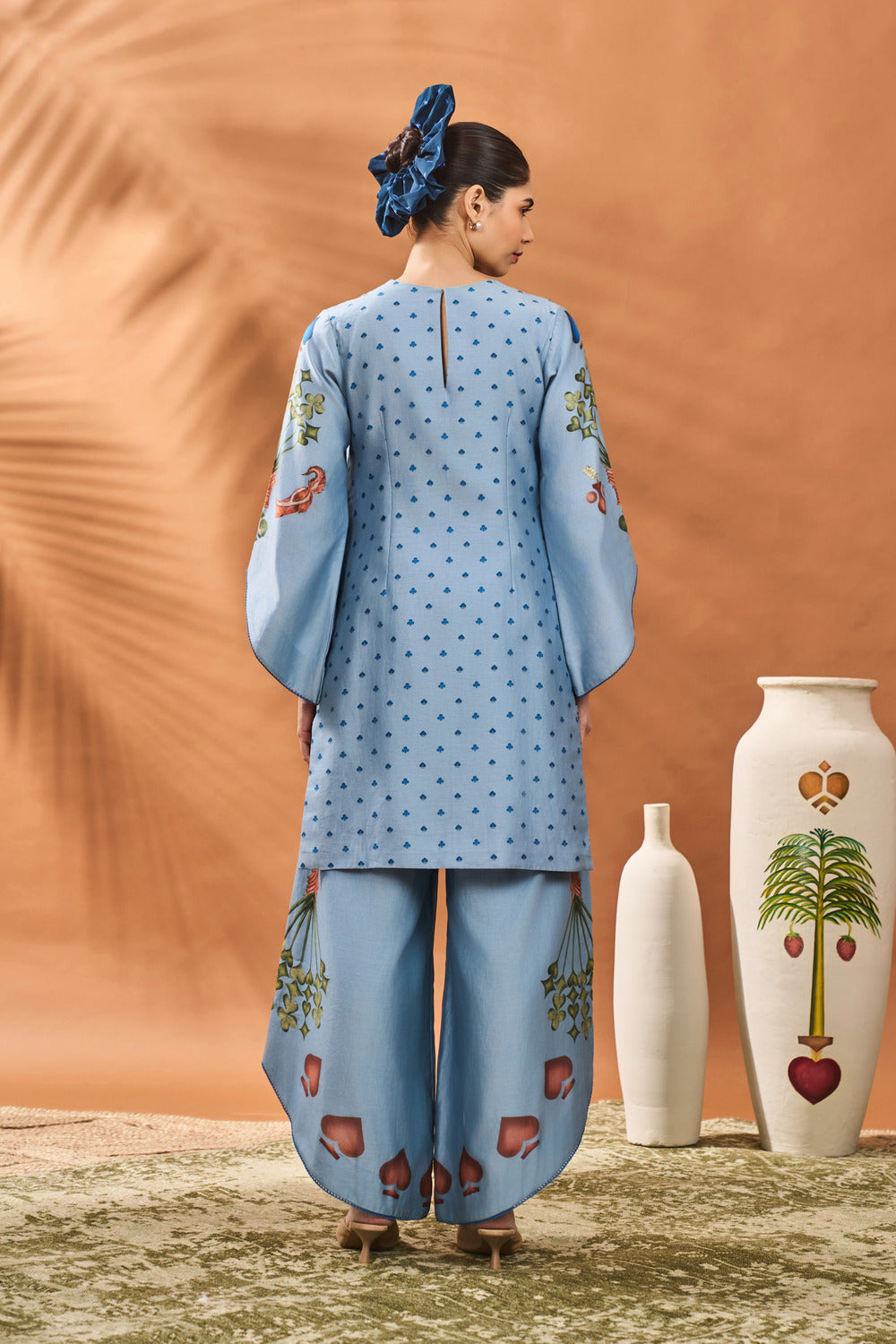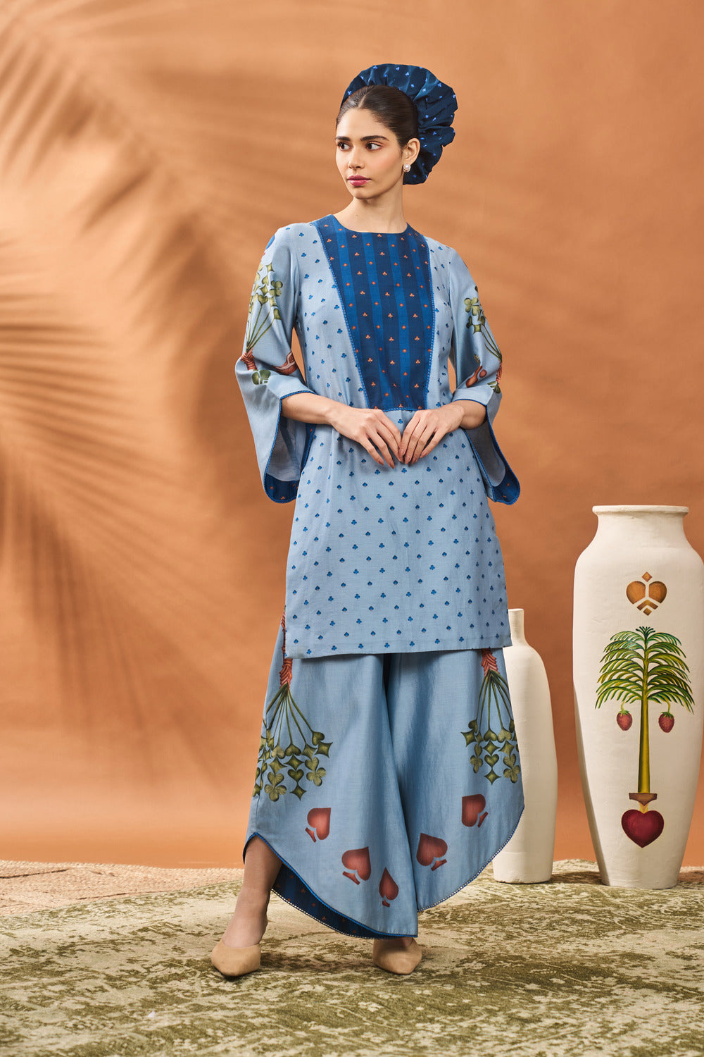 POWDER BLUE SPADE BLOSSOM TUNIC SET