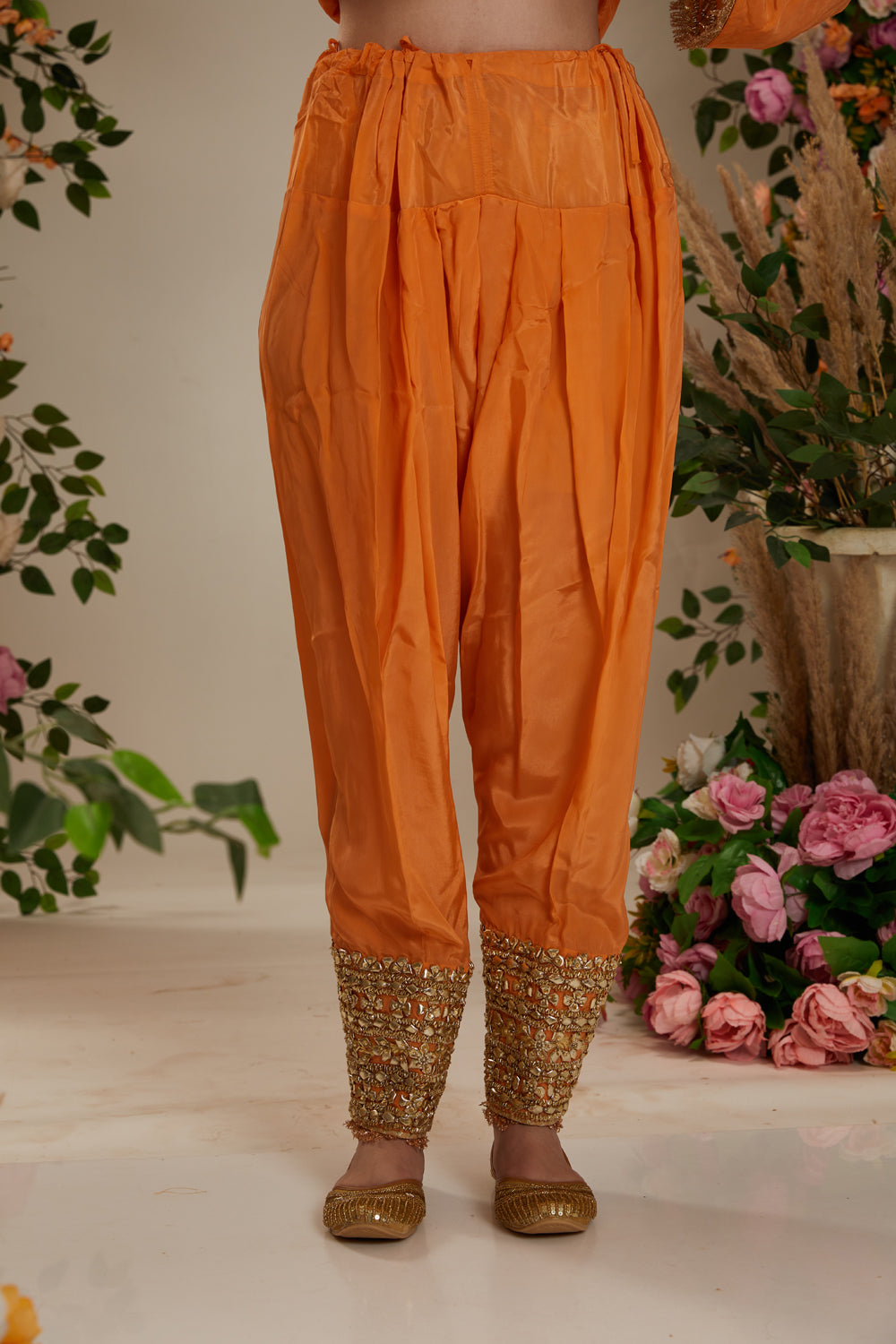 Peach orange georgette long anarkali with intricate gota work paired with matching salwar and pure organza dupatta