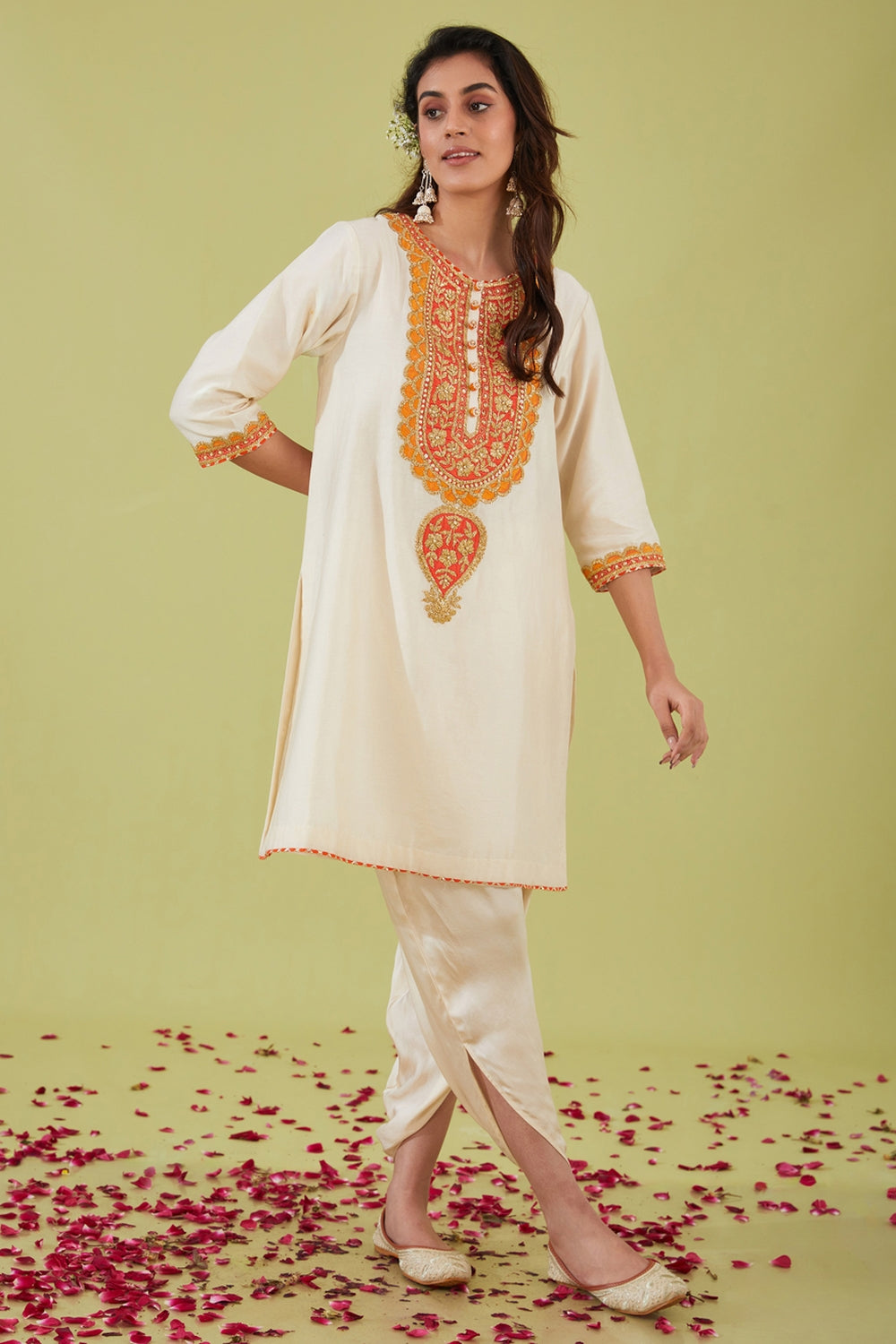 White Short Kurta With Pants