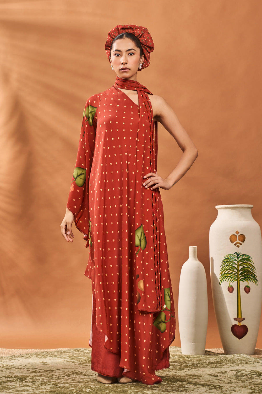 STYLING - Pair this beautiful Kurta set with a pair of statement earrings and mojris. Accessories it with a beautiful clutch bag.