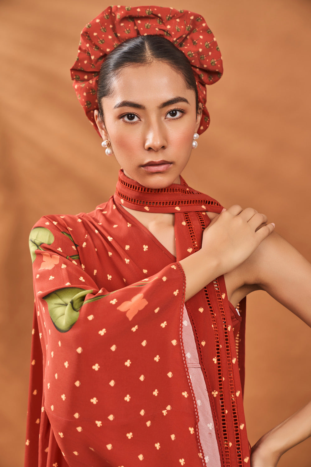 CARE INSTRUCTIONS - Strictly dry clean only for digitally printed garments & non-petroleum dry clean for hand-printed garments. Exercise caution when handling raw silk garments to avoid damage and lint accumulation. If you notice lint on your raw silk garment, use a lint shaver to carefully remove it. Do not use harsh brushes or abrasive materials, as they can damage the fabric.