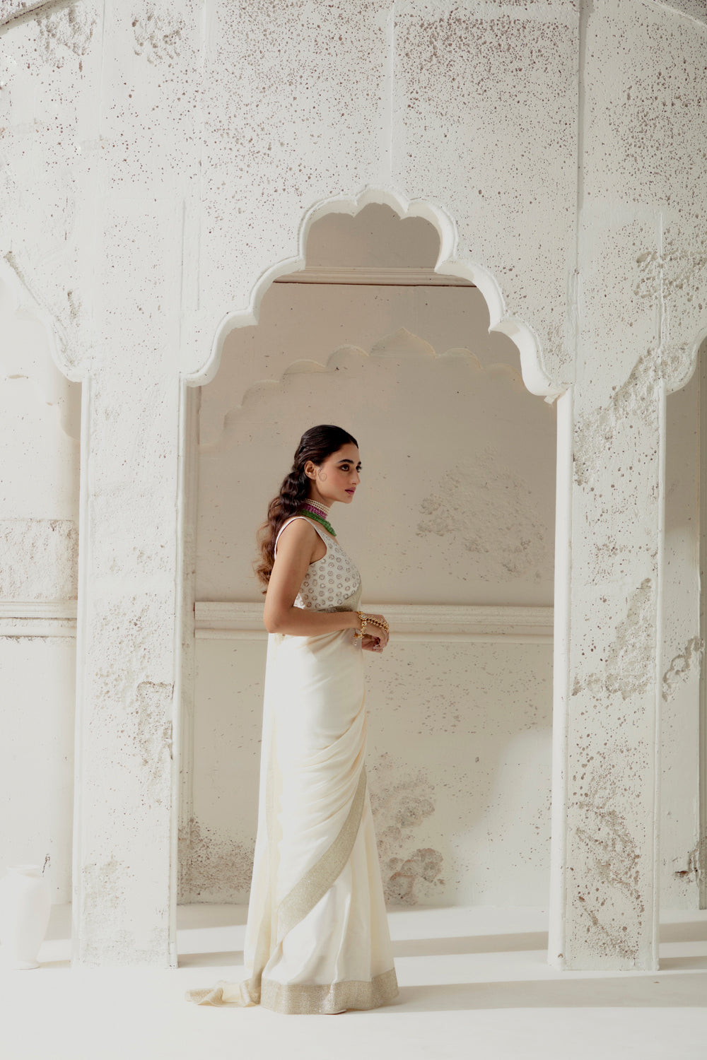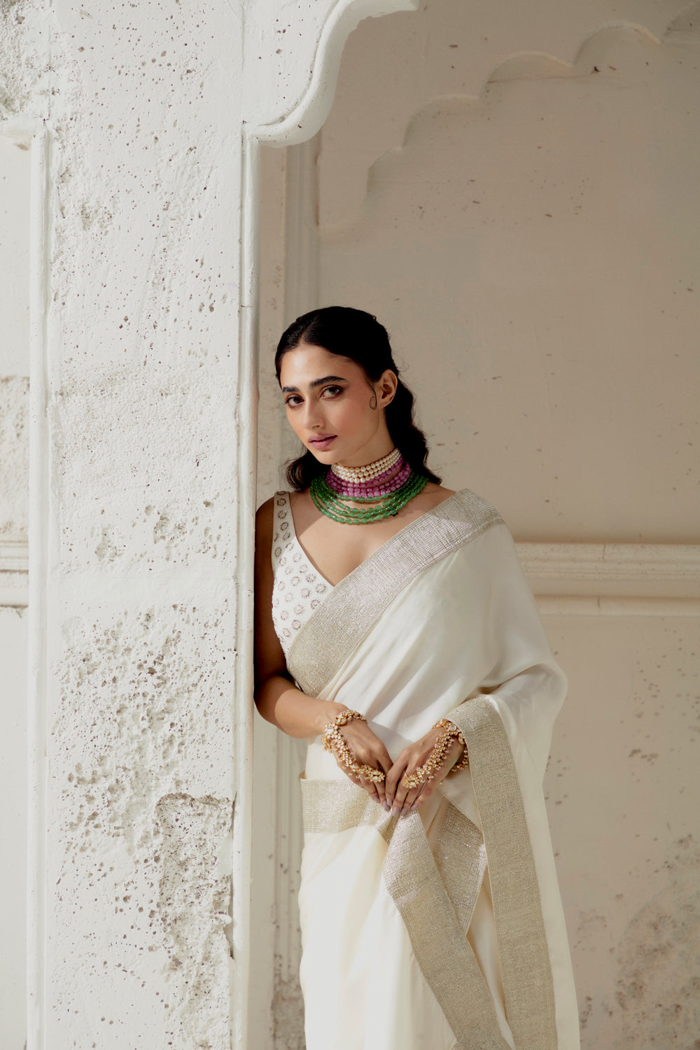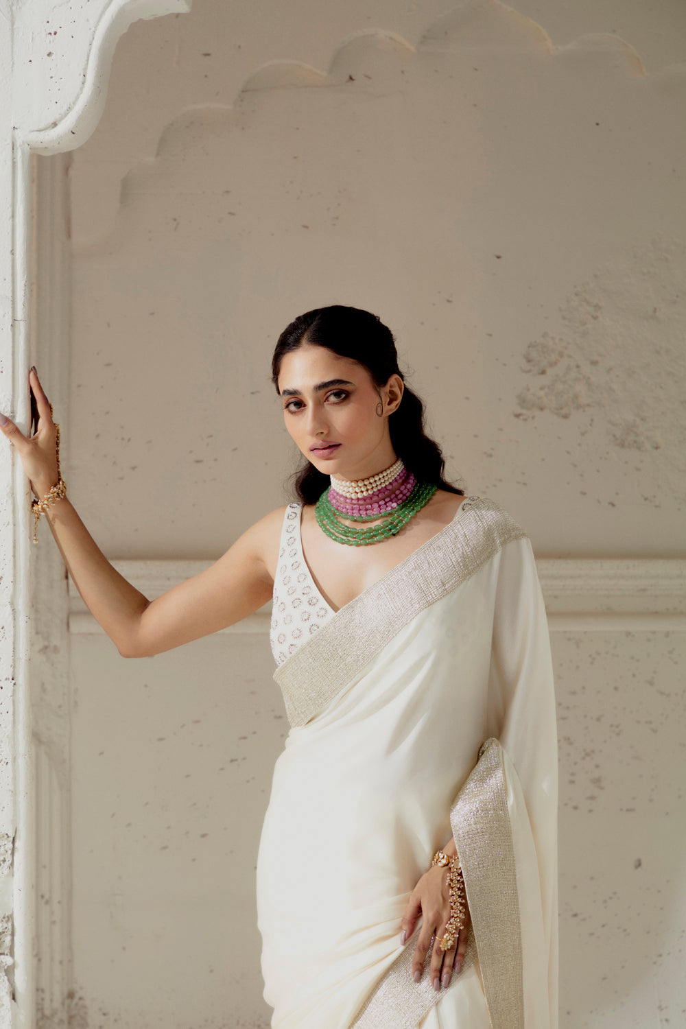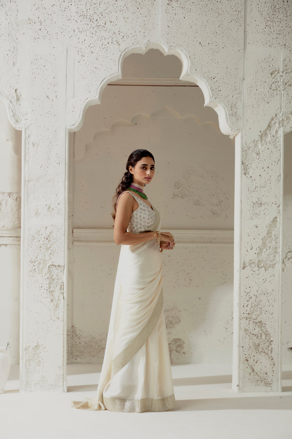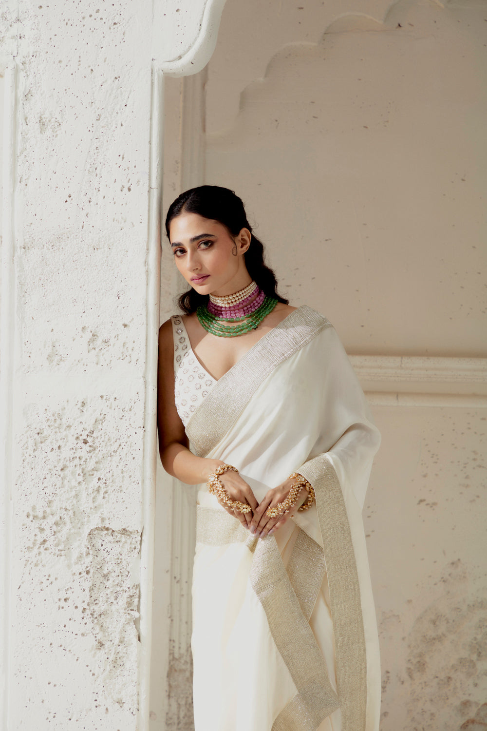 Ivory Silk Satin Saree