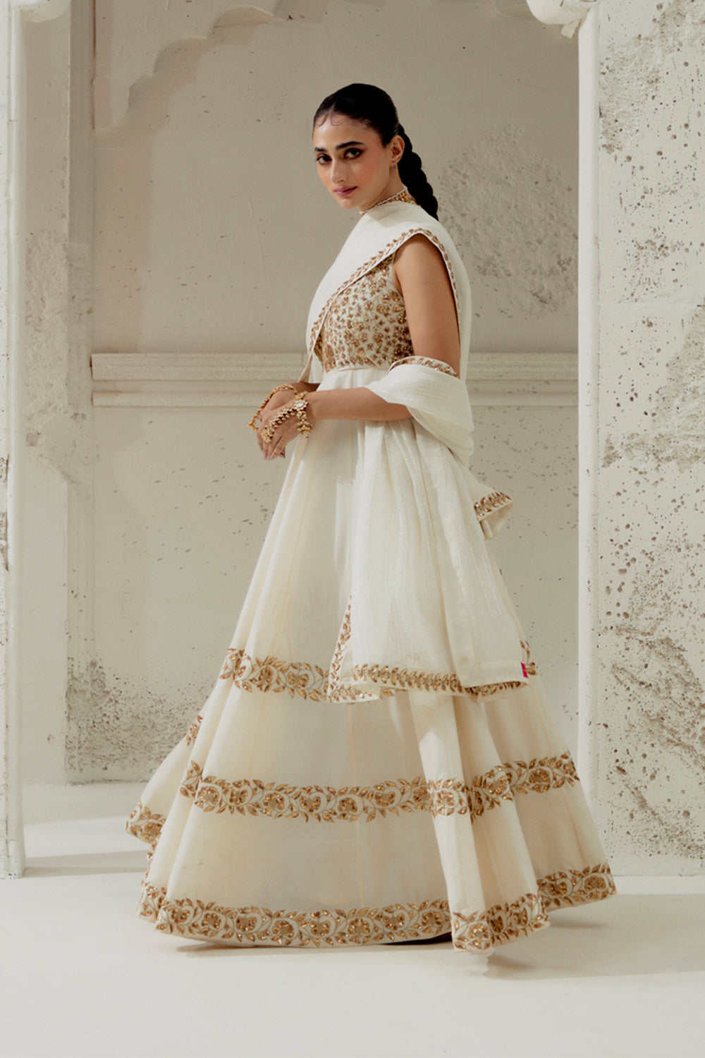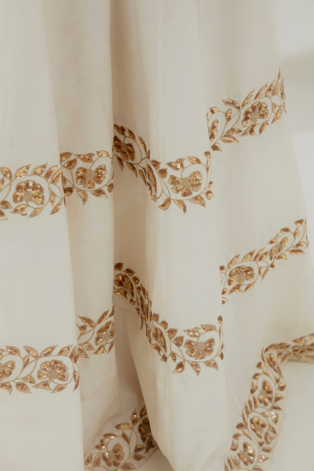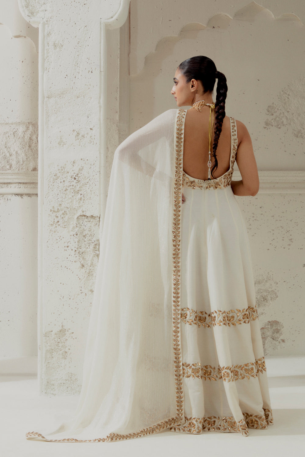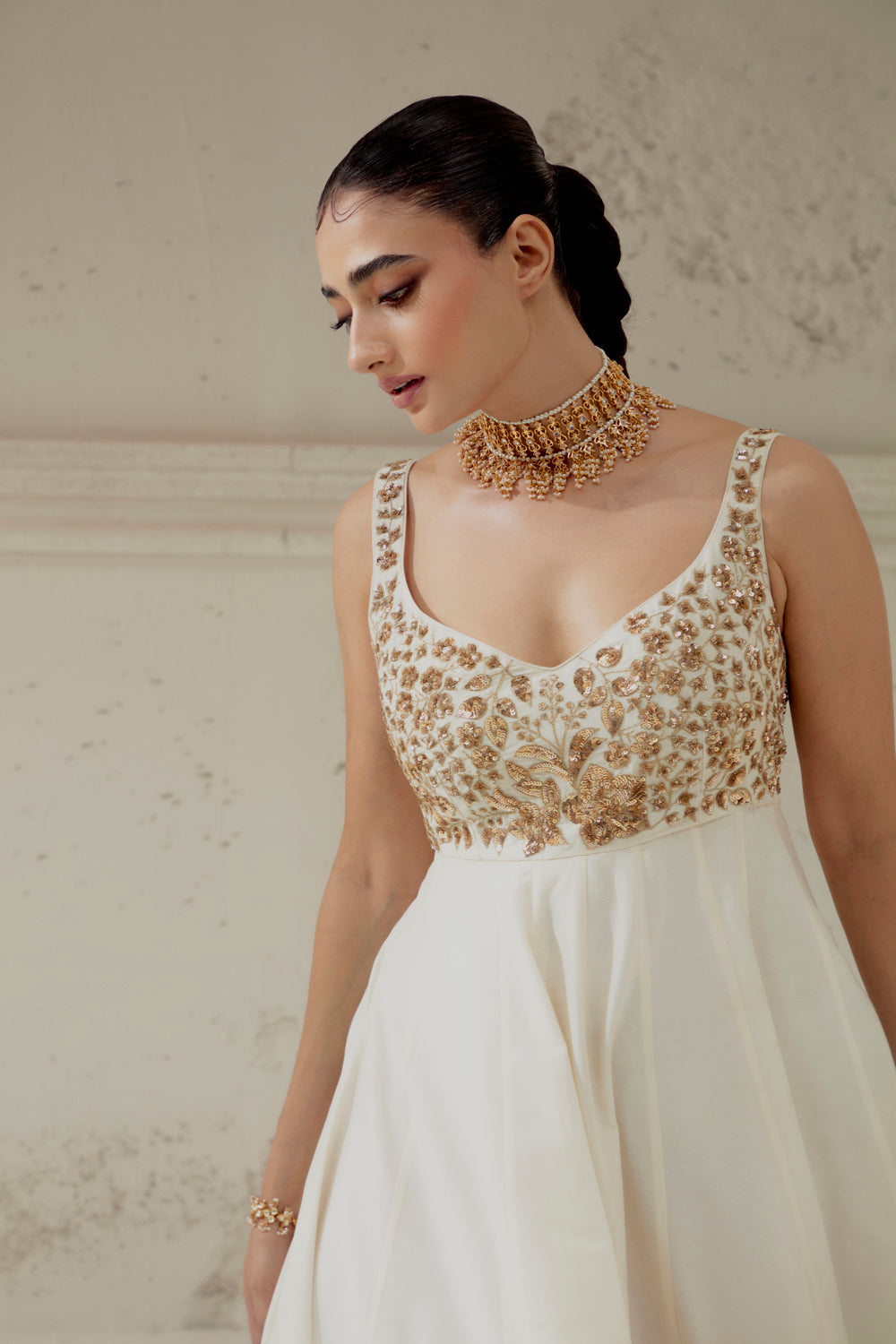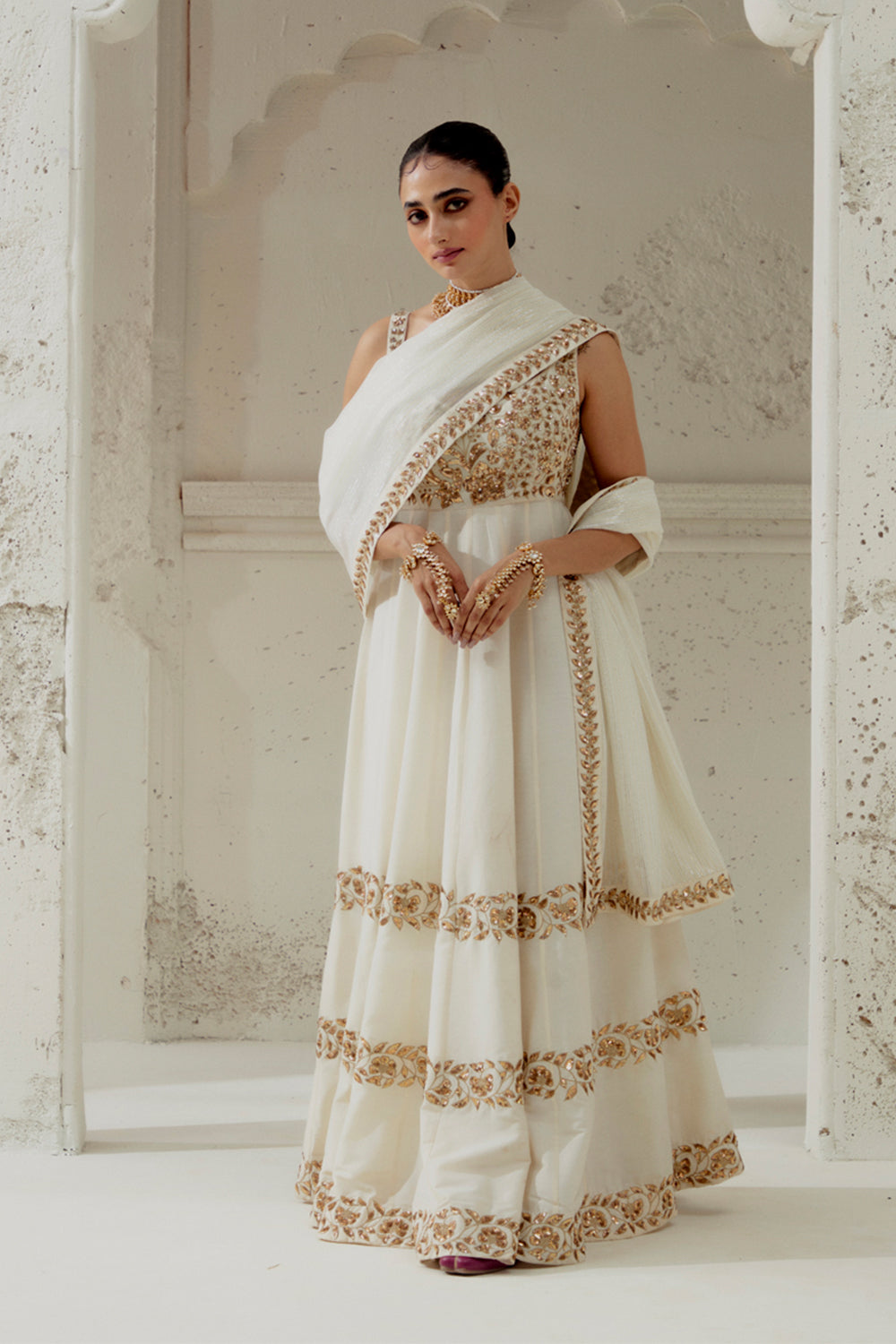 Anarkali suit in blended silk with our signature floral mixed medium zardosi embroideries. paired with a flowy georgette lurex dupatta