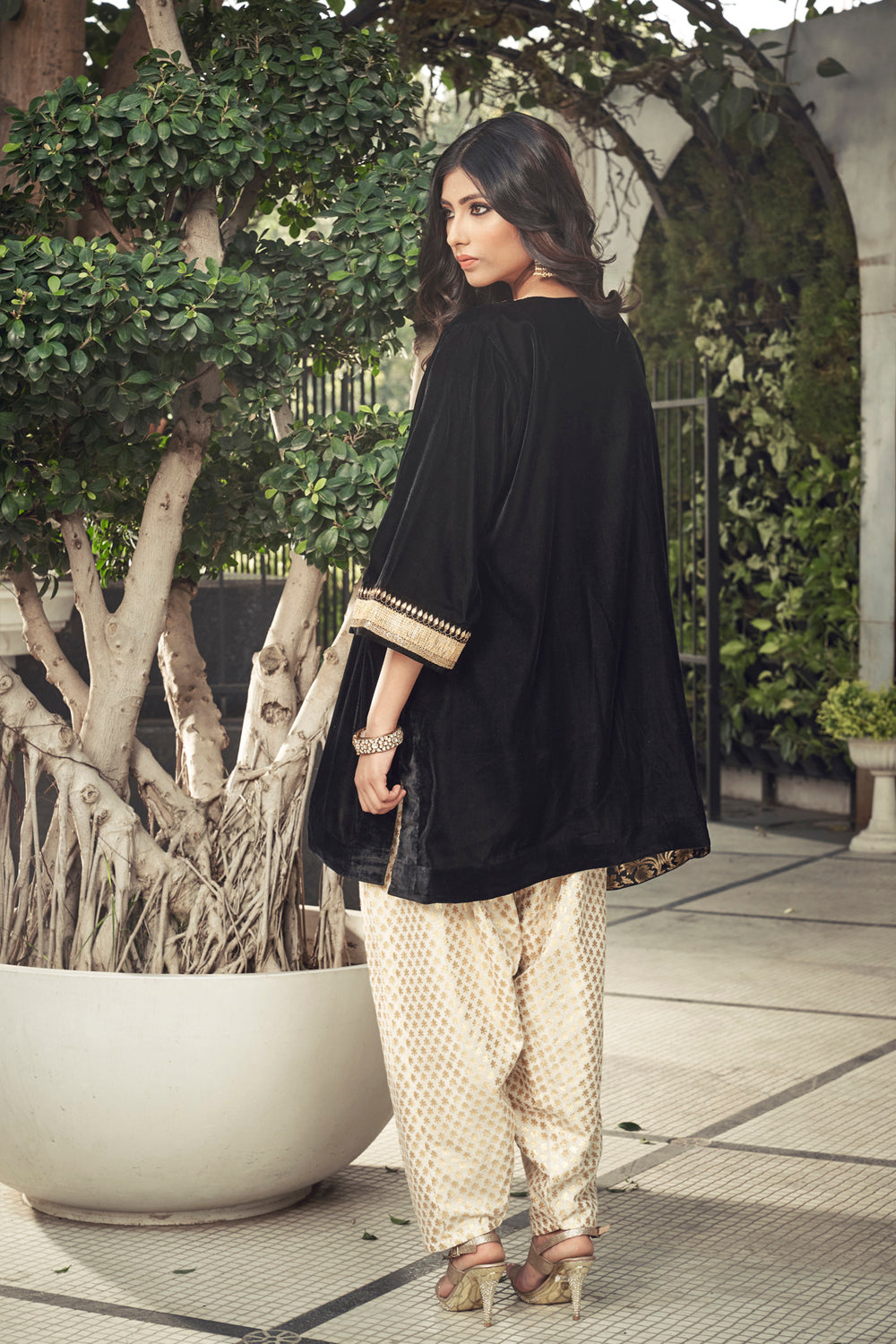 Black Velvet Kurta With Dhoti Salwar