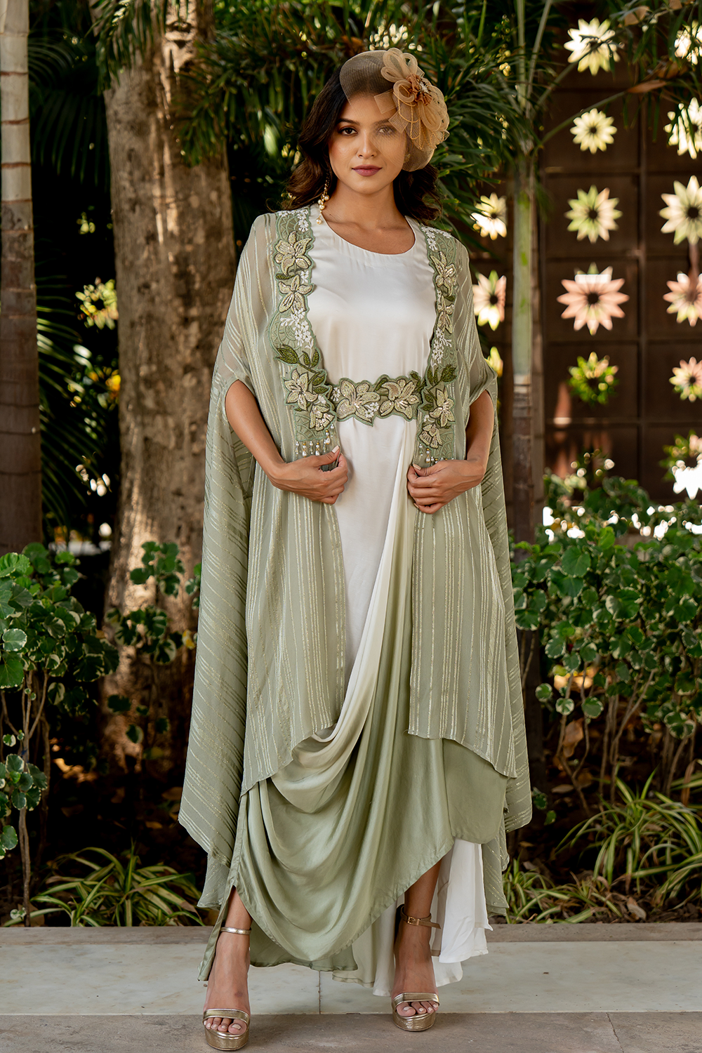 Cowl Dress ombre cowl dress with an embroidered belt and cape